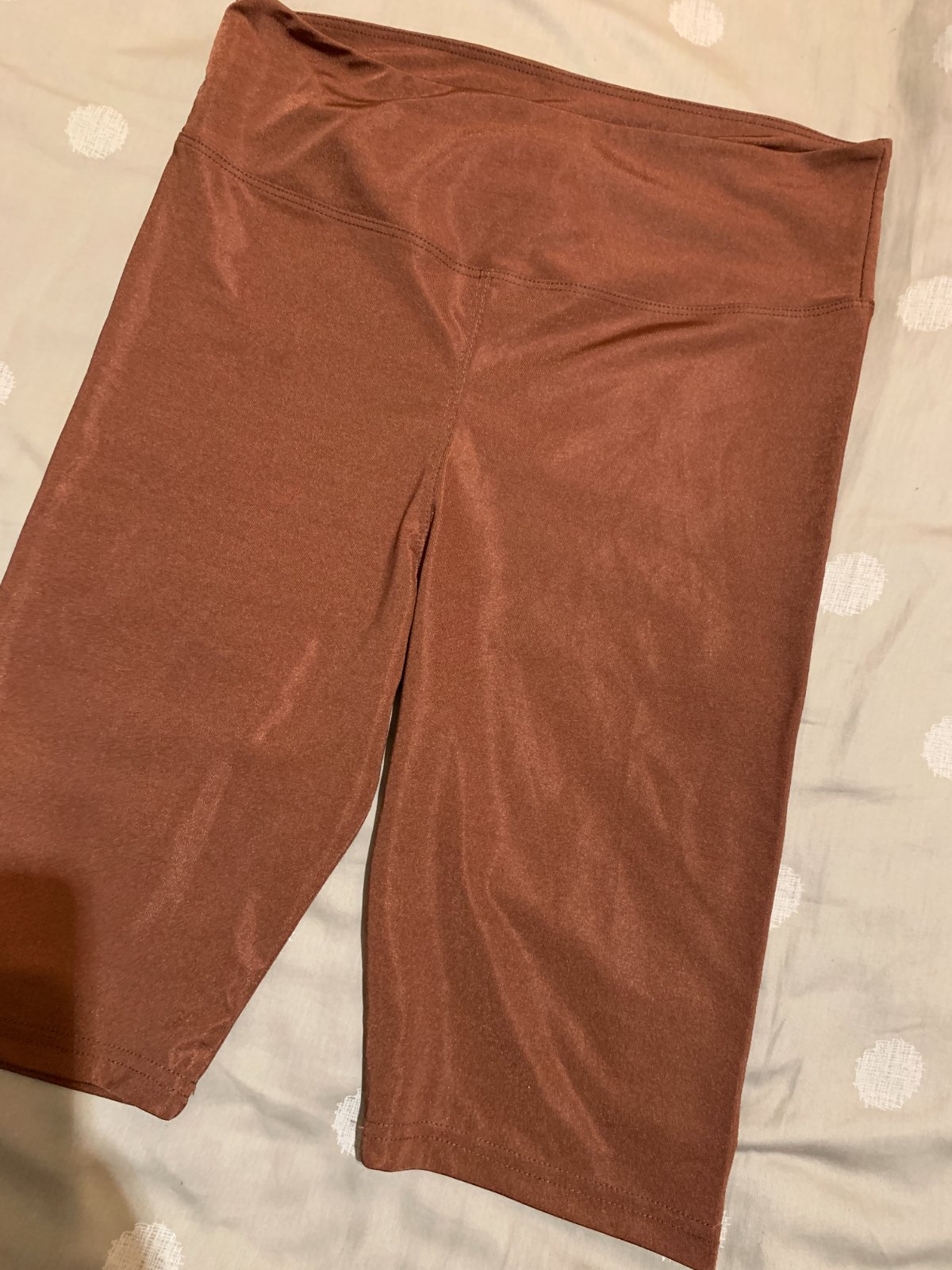 Krátke lesklé legíny, veľmi dobrý stav bez poškodení. Veľkosť uvedená XXL, ale sú menšie...doporučujem na L.