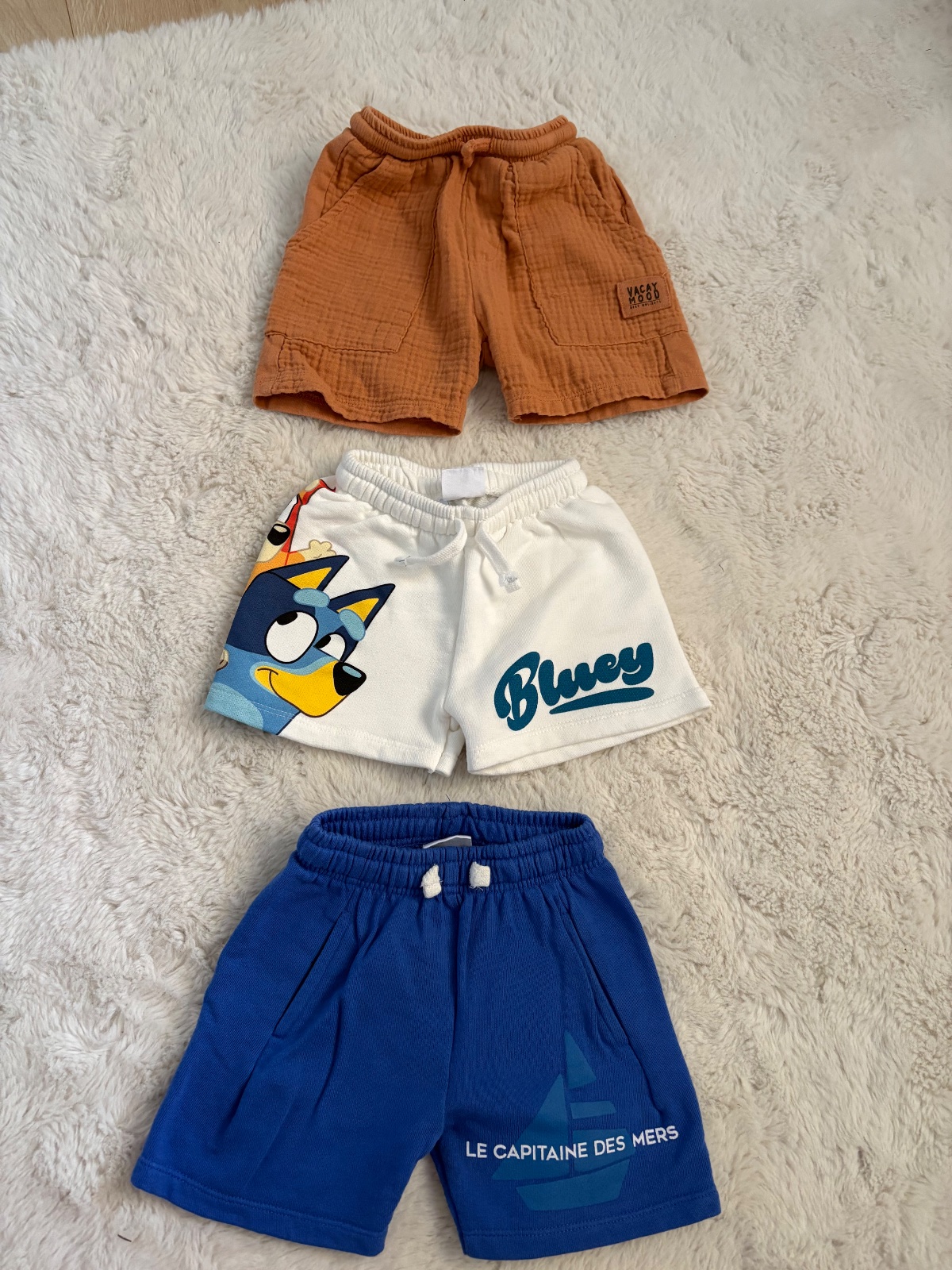 Nádherné kraťase, uvedená veľkosť je 104 na 3/4 r. chlapčeka, sú však menšie, hneď nám boli malé, takže odporúčam skôr na 2/3 chlapčeka. Sú v top stave, oblečené maxim. 1x. oblečené a 1x prané. Urč...