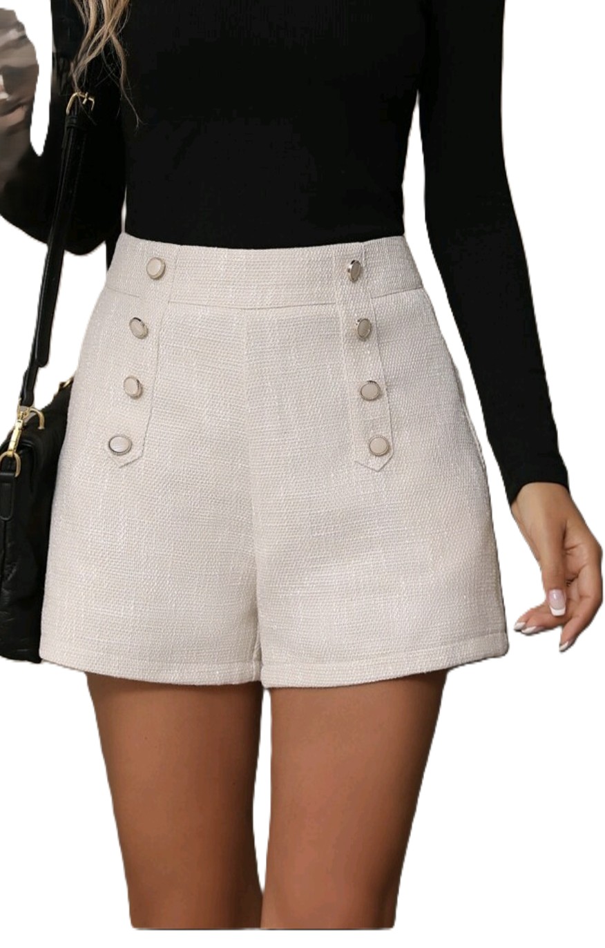 Krásne tweedové krátke nohavice, krémovej farby, veľkosť L, príjemný kvalitný materiál, zapínanie vzdadu na zips. Nohavice sú nenosené (nesadla veľkosť).