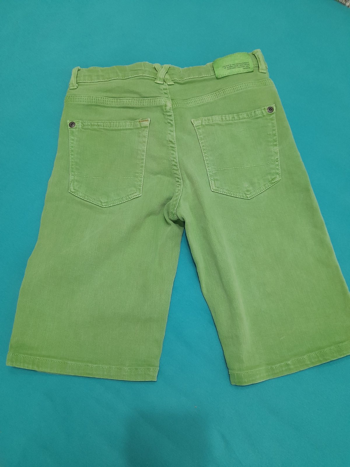 riflové mäkkučké elastické kraťasky, v peknom stave bez poškodení, akurát vzadu pod vačkom majú fliačik - viď.foto, je to vidno iba zblízka. V páse gumičky na stiahnutie, veľkosť na 9-10 rokov, dĺž...