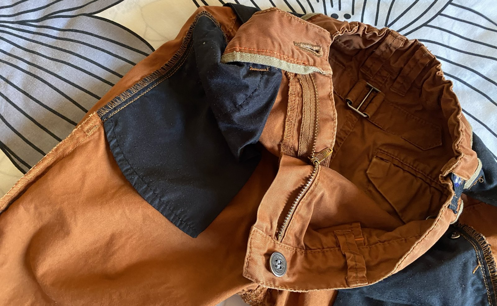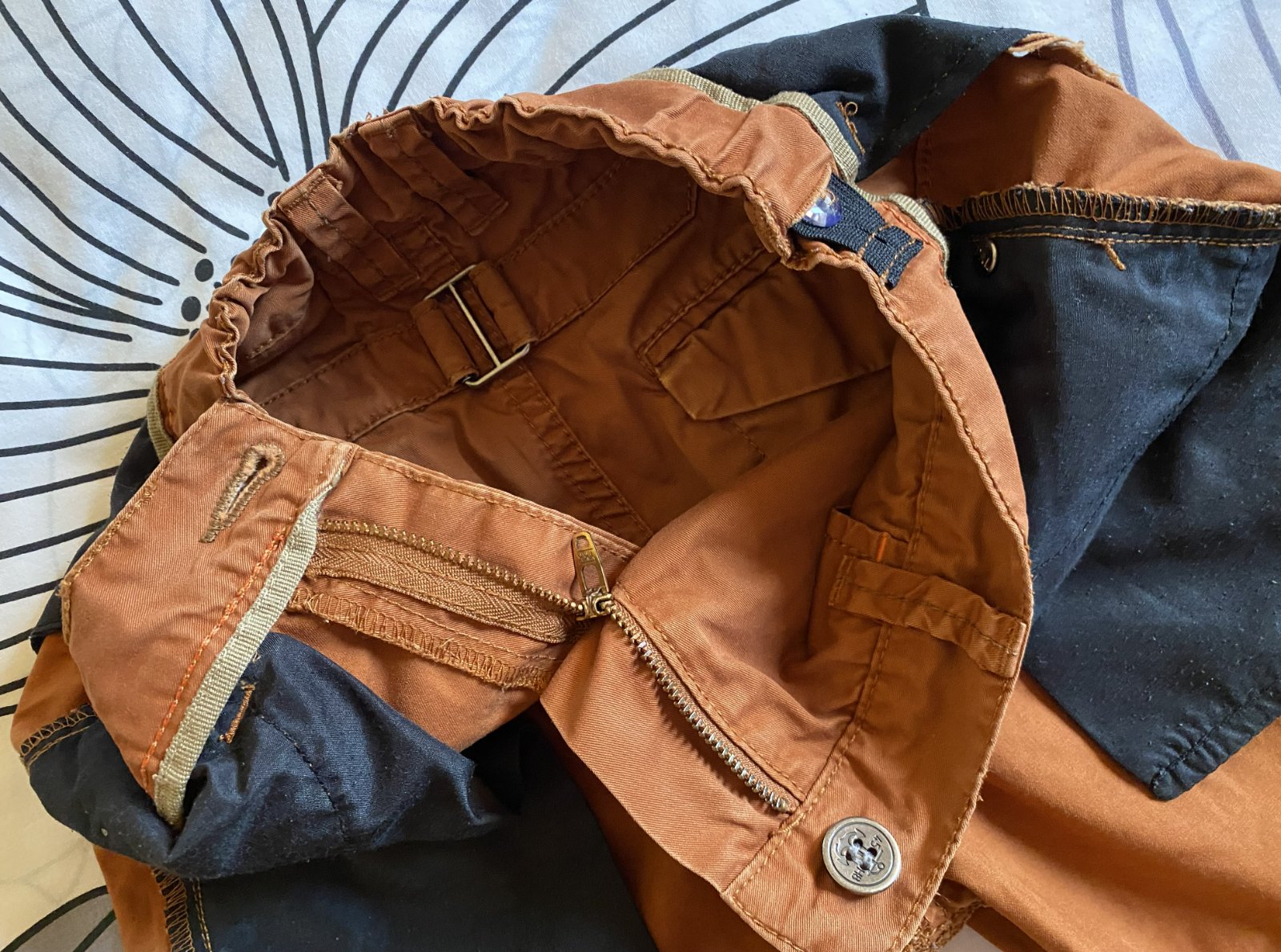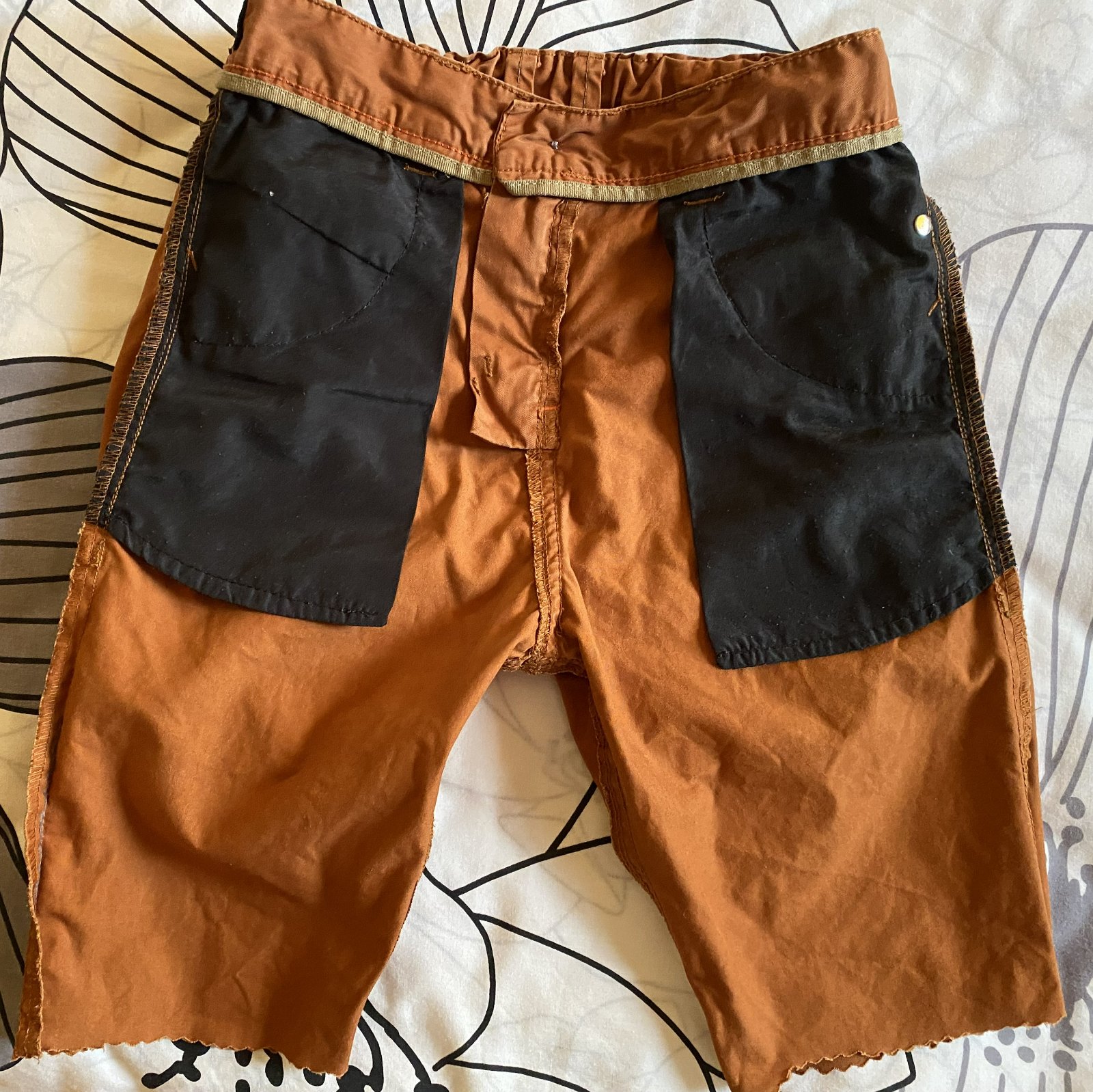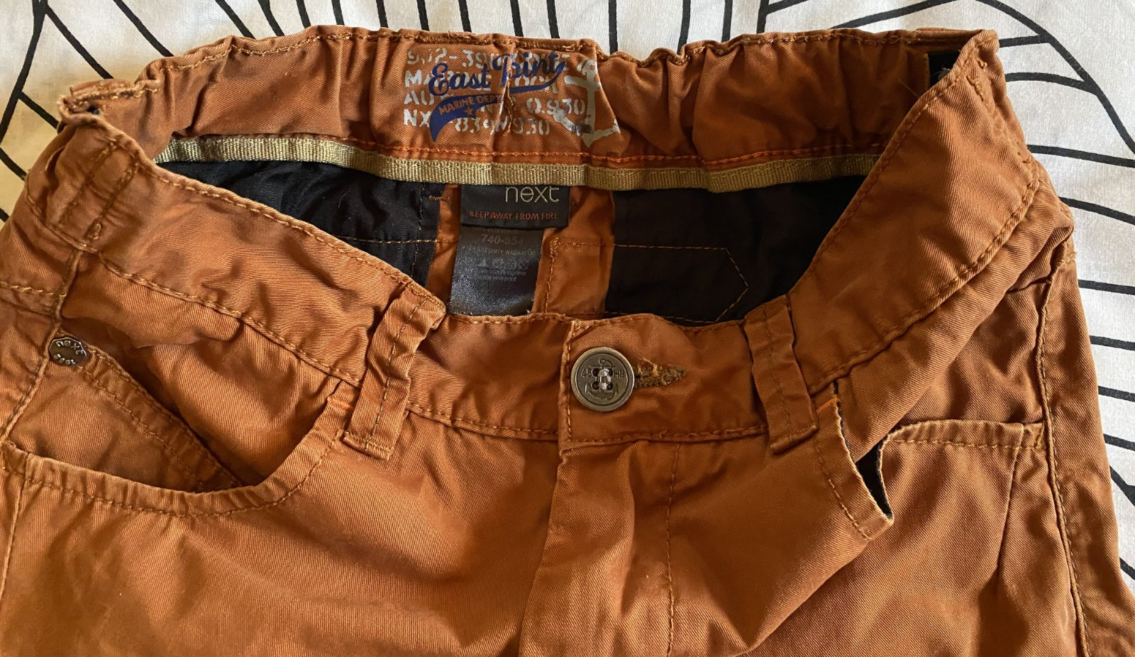 Krátke bavlnené nohavice Next v. 128, kvalitne prepracované, kopa pekných funkčných detailov, v páse regulovanie, pekná nevypratá farba, málo nosené na striedačku s inými. Pôvodne boli dlhé, podarila sa diera na kolene - odstrihnuté a upravené "cik-cak krajčírskymi nožnicami.