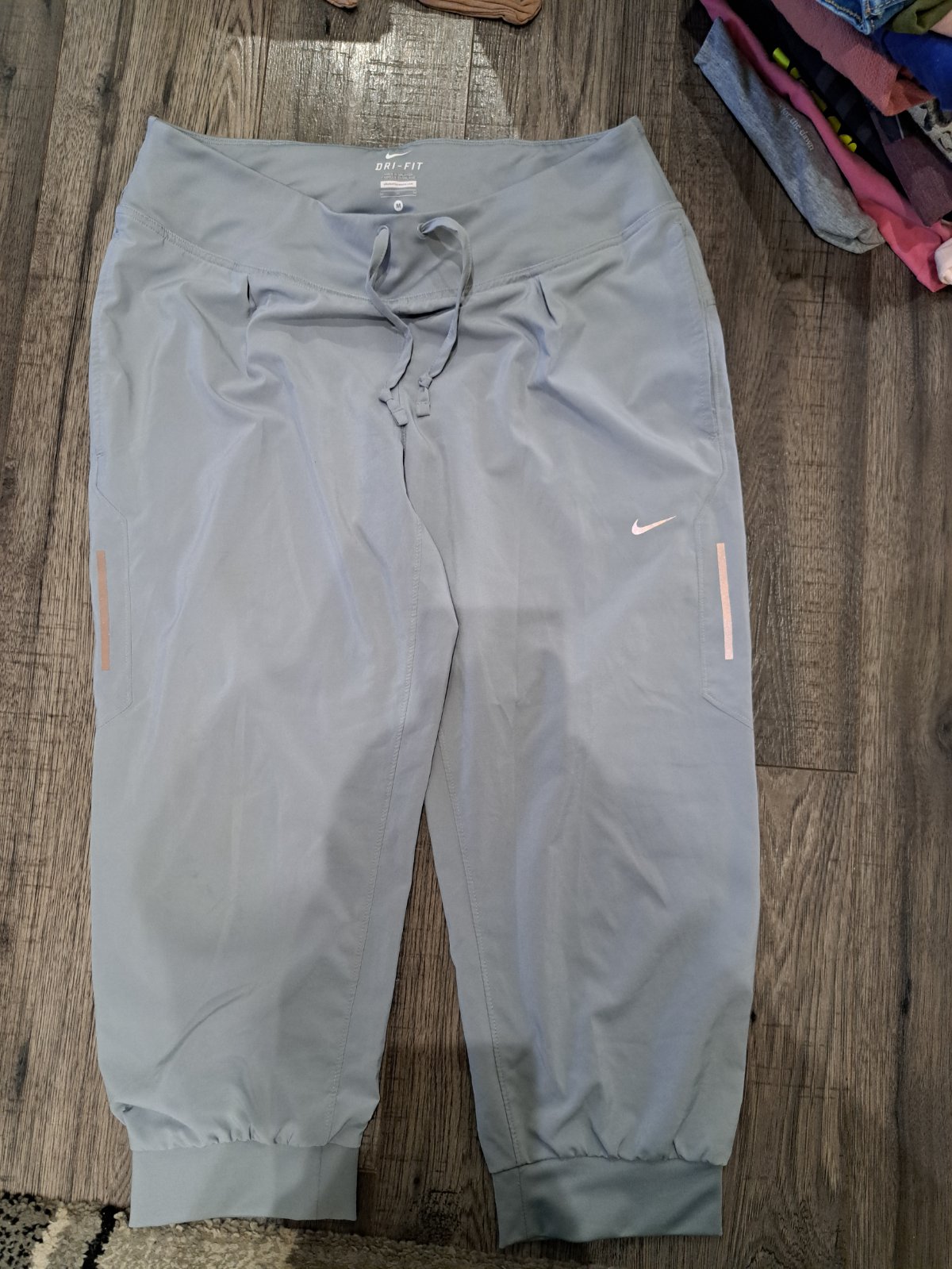 kvalitné bavlnené neznosené 3/4 tepláky,jemne vtkaná trblietavá strieborná nitka,krásny strih, super do telocvične,ale aj ako voľnočasové tepláky,prípadne na doma, vzadu sedielko, veľmi pekne sedia...