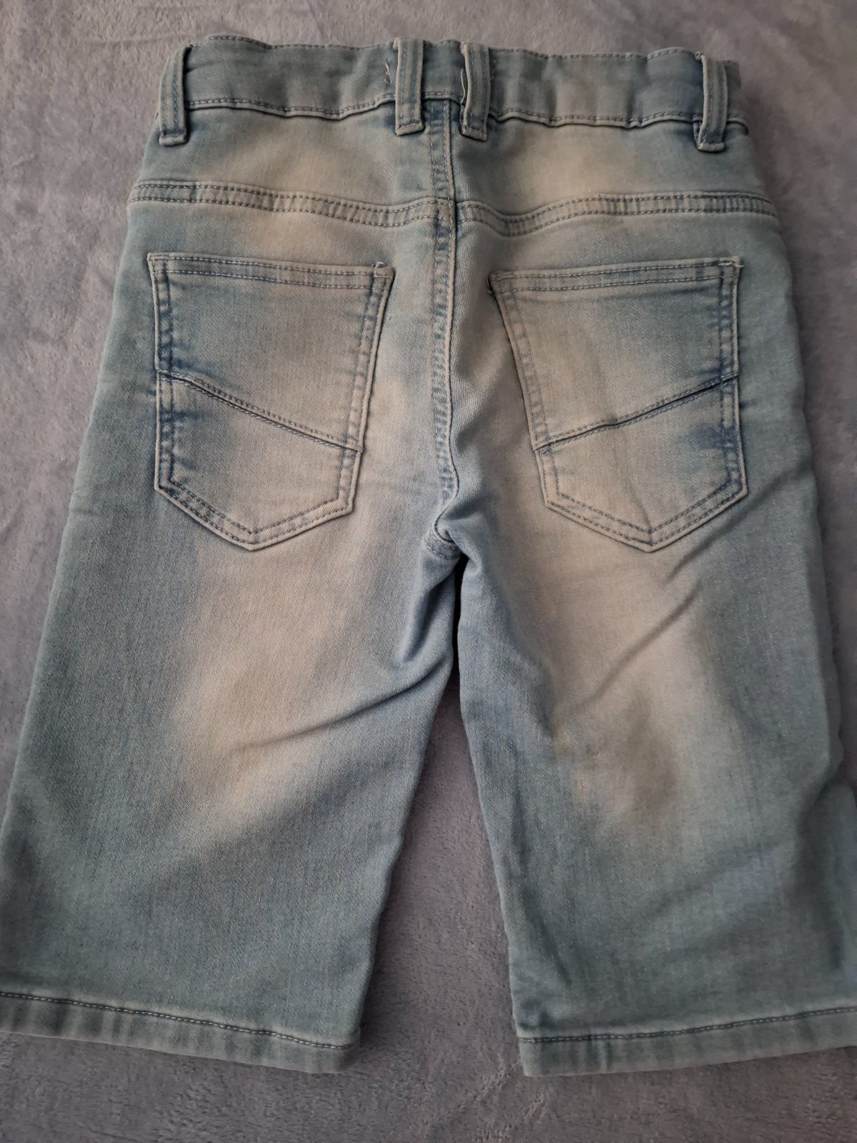 Predám makkucke elastické riflove kratase.Velkost 134 nastaviteľným pásom.