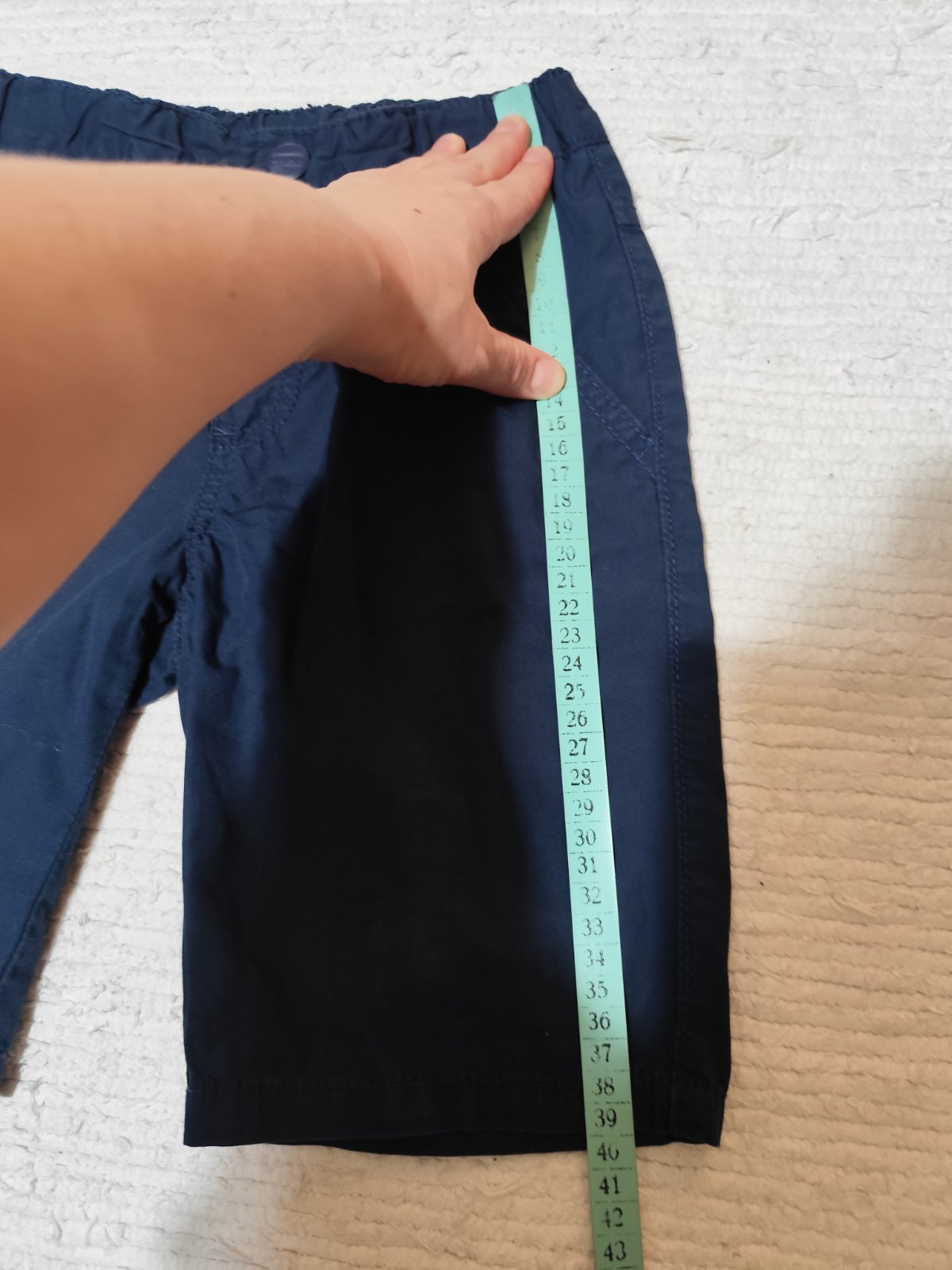 - kratasy odstrihnute z dlhych rifli, frajerske, makkucka riflovinka, velmi prijemne a pohodlne. Velkost 122 /nosili sme ako 128/, dlzka 30-31cm, pas 2x30cm + regulacna guma. Dobry noseny stav, len...