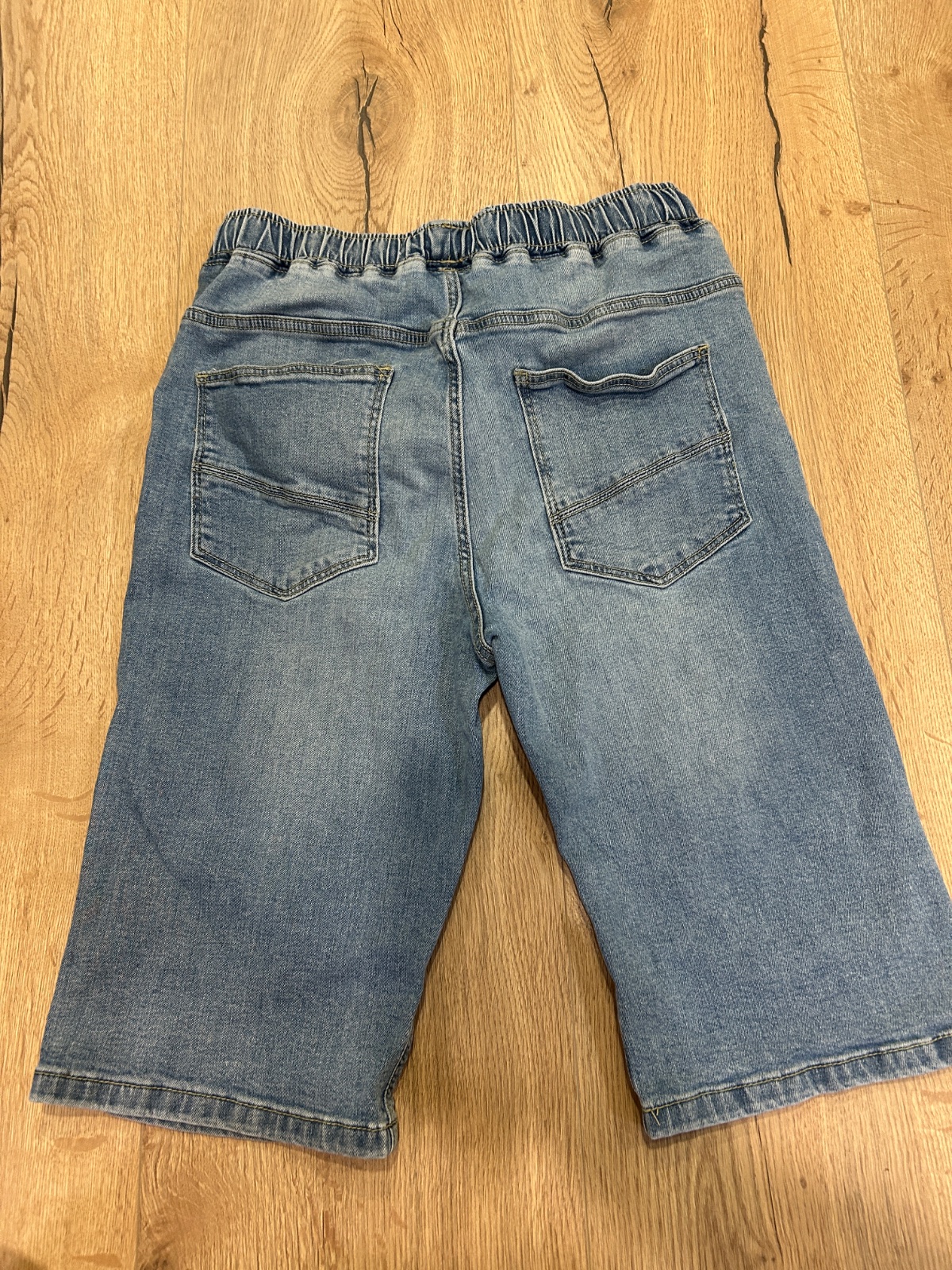 Tenké kraťasy, trošku vidno nosenie na farbe. V páse regulovateľná gumka. Dl. 50/22, pás v kľude 38x2cm.