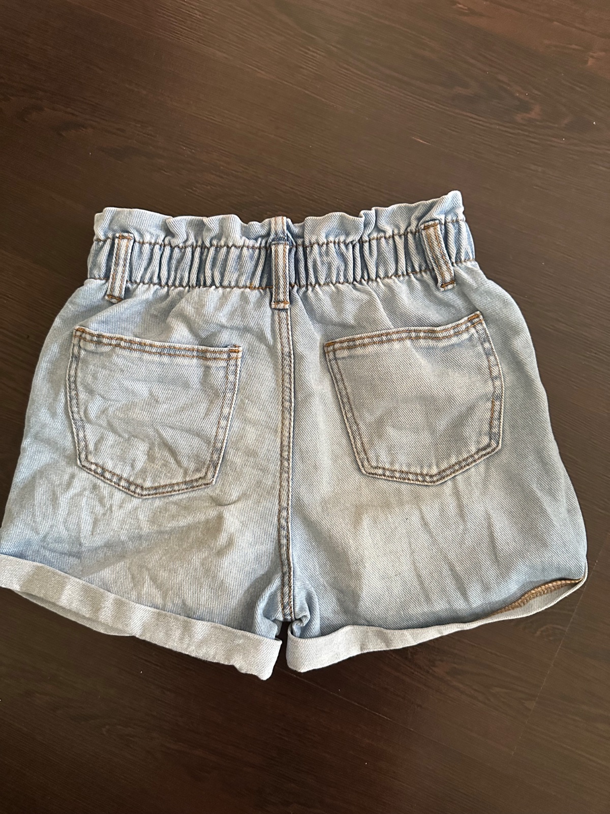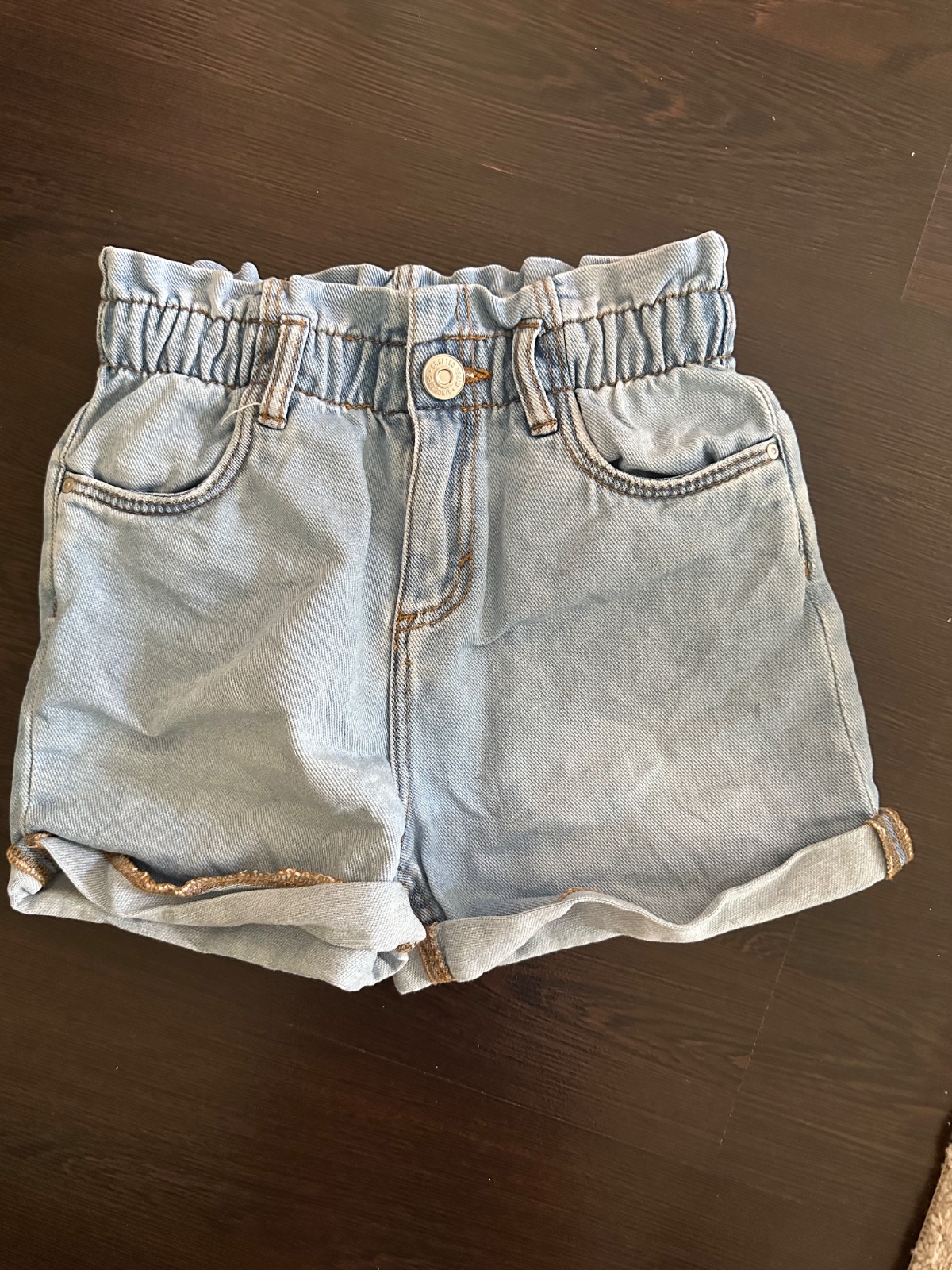 Top stav, Krásne riflové šortky s výšivkou kvetiny. Pár glitríkov.