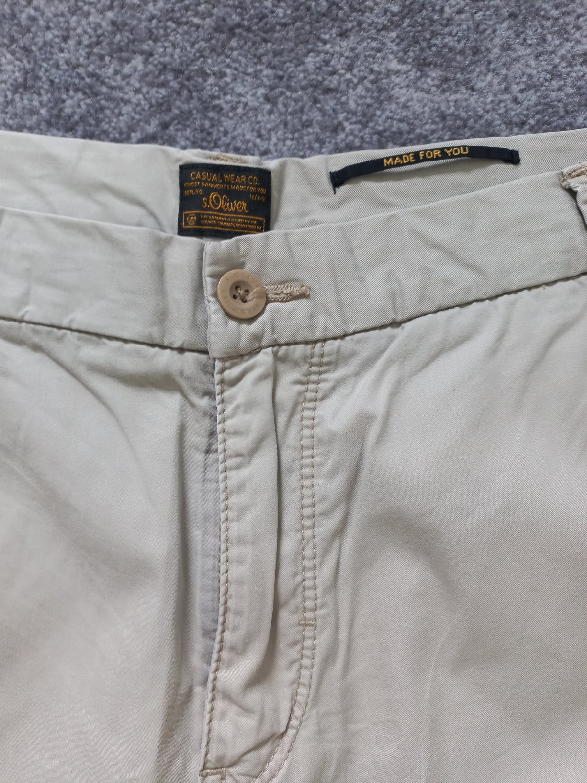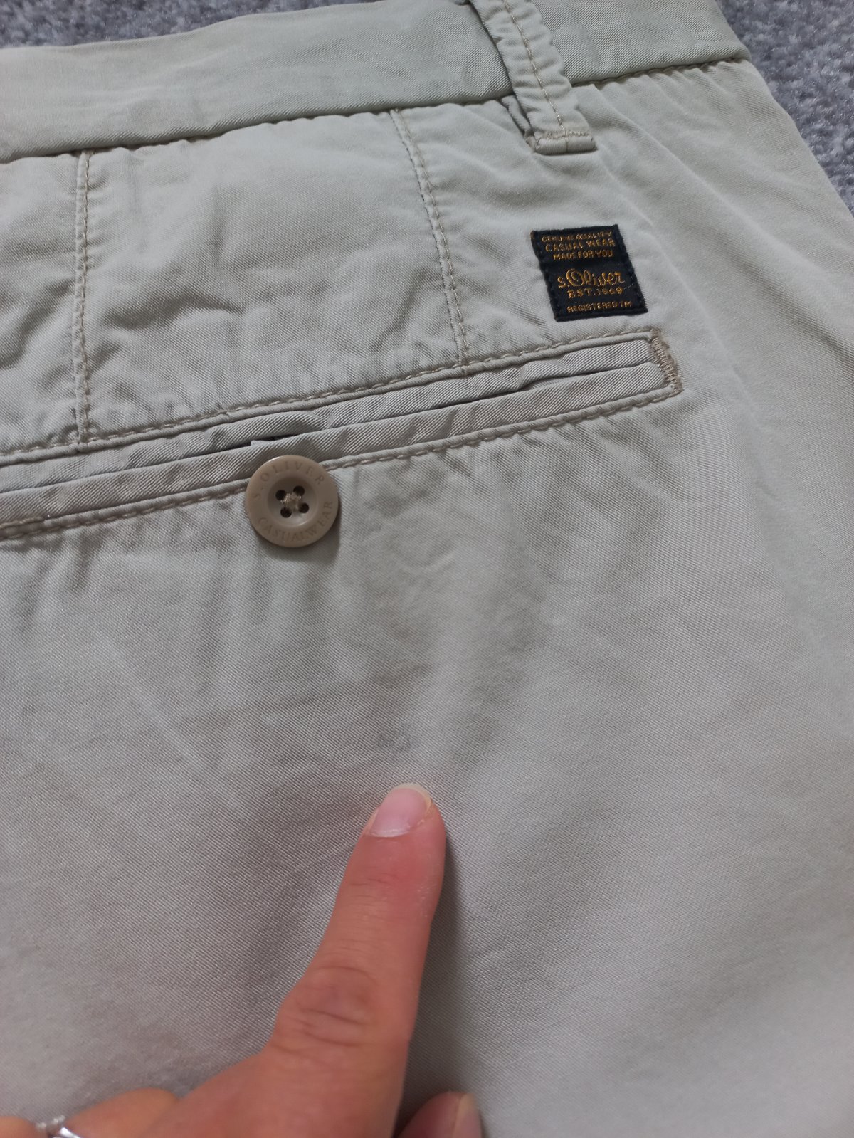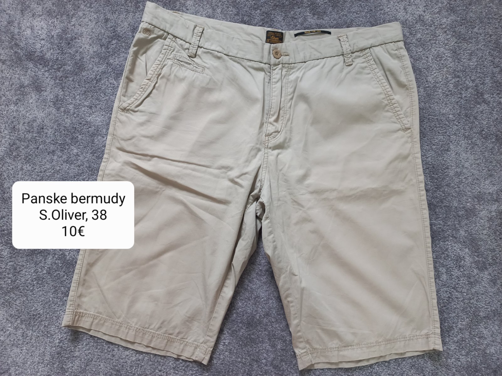 Predam malo nosene bermudy znacky S.Oliver, velkost 38 (cca XL). Pri zadnom vrecku je malicky fliacik, pri noseni nevidno. Inac super stav.