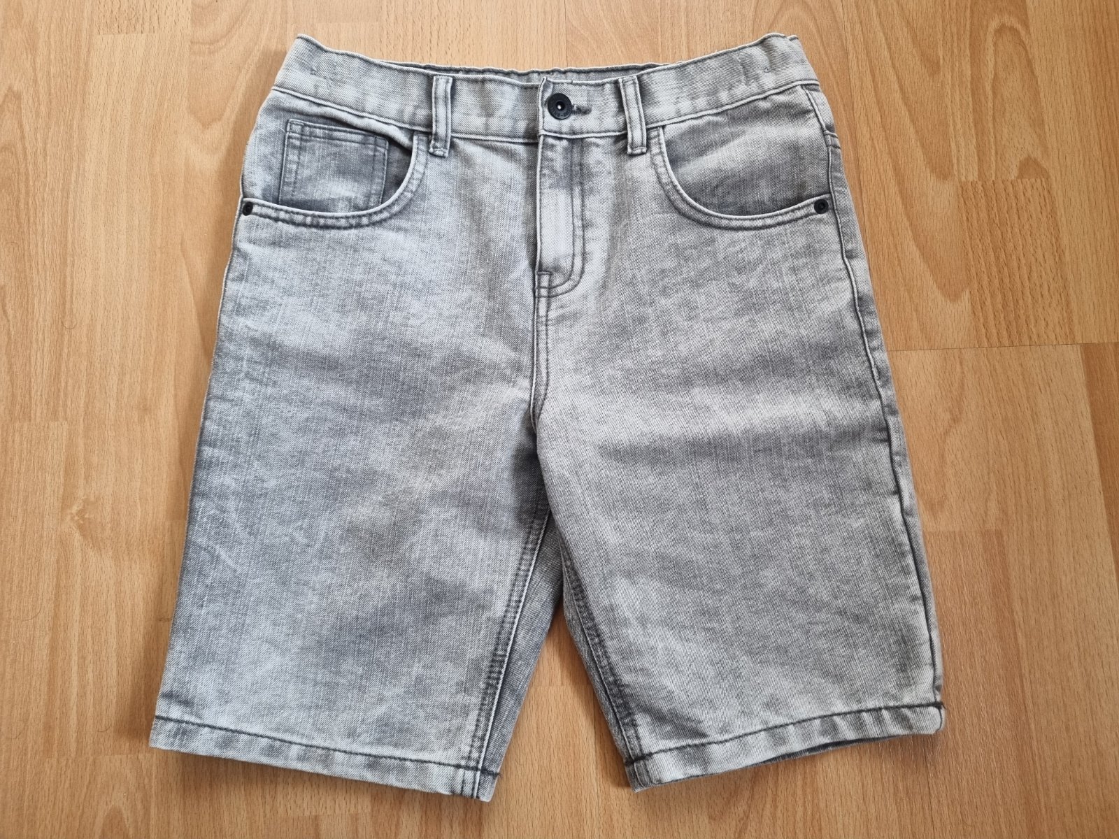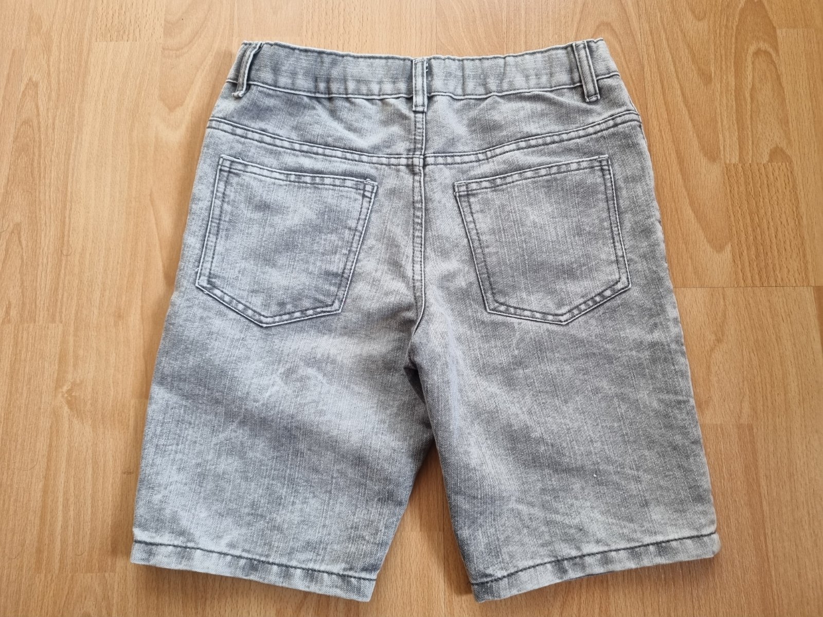 Detské riflové kraťasy značky F&F, veľkosť 152 (11-12 rokov), dĺžka 45 cm, obvod pása 70 cm - dá sa stiahnuť, na boku je guma a gombíky. Boli nosené, sú v dobrom stave, bez poškodení.