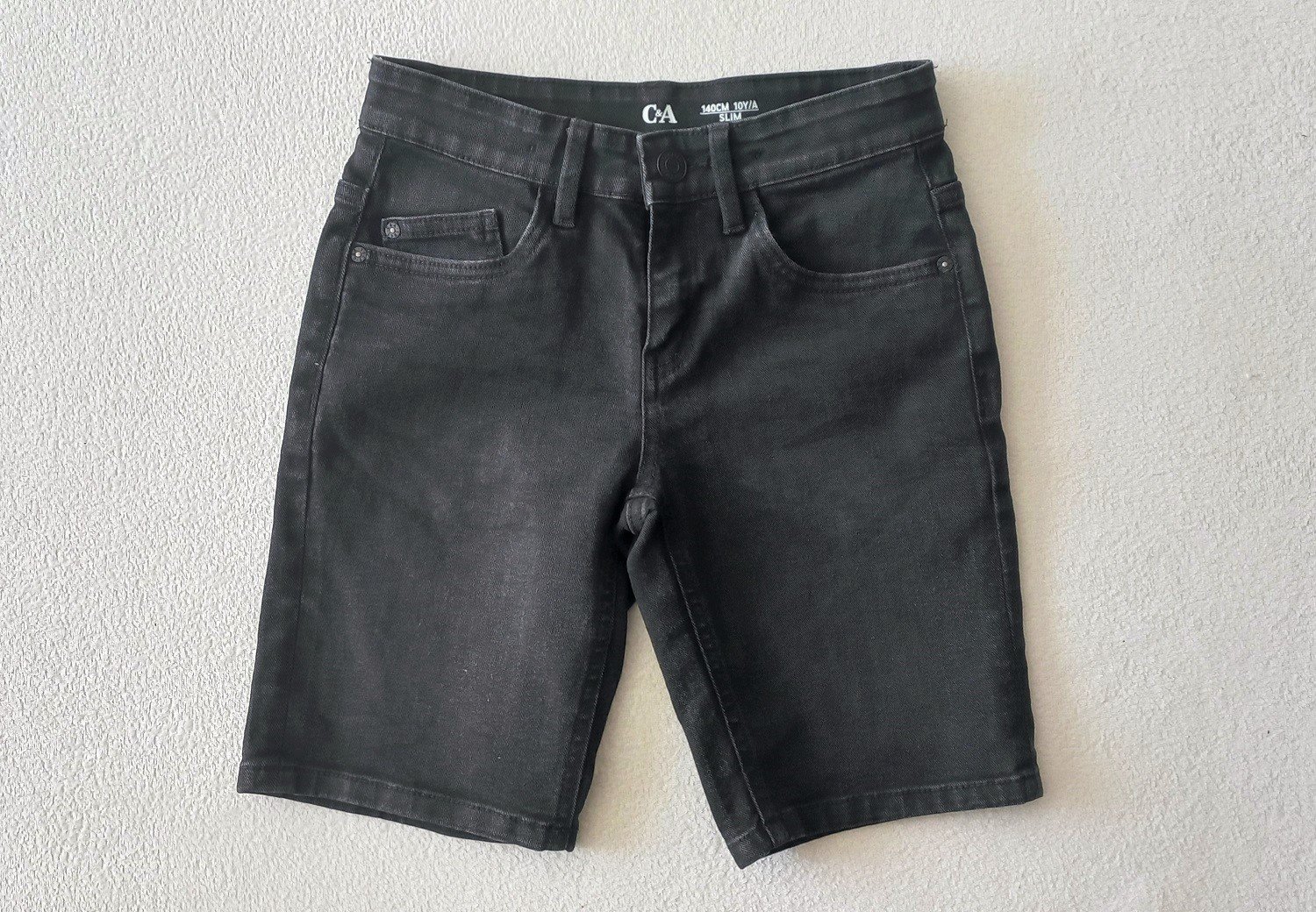 Čierne slim rifľové kraťasky, veľkosť 140, značka C&A, v páse regulácia. Asi dvakrát oblečené, nepoškodené.
