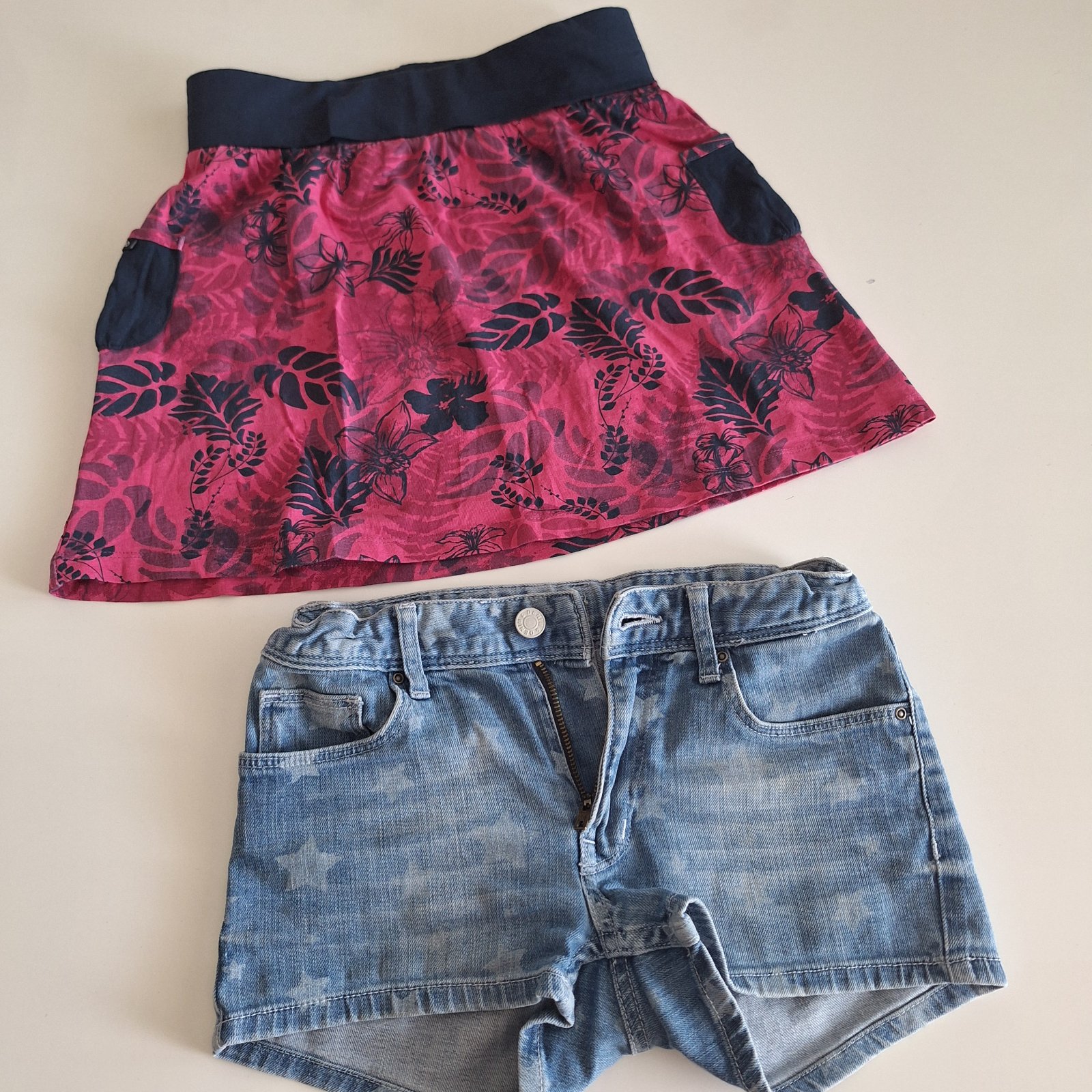 Riflové kraťasy veľkosť 140 (9-10 rokov) + sukňa Alpine pro veľkosť 140/146 v dobrom stave. Cena spolu 6€.