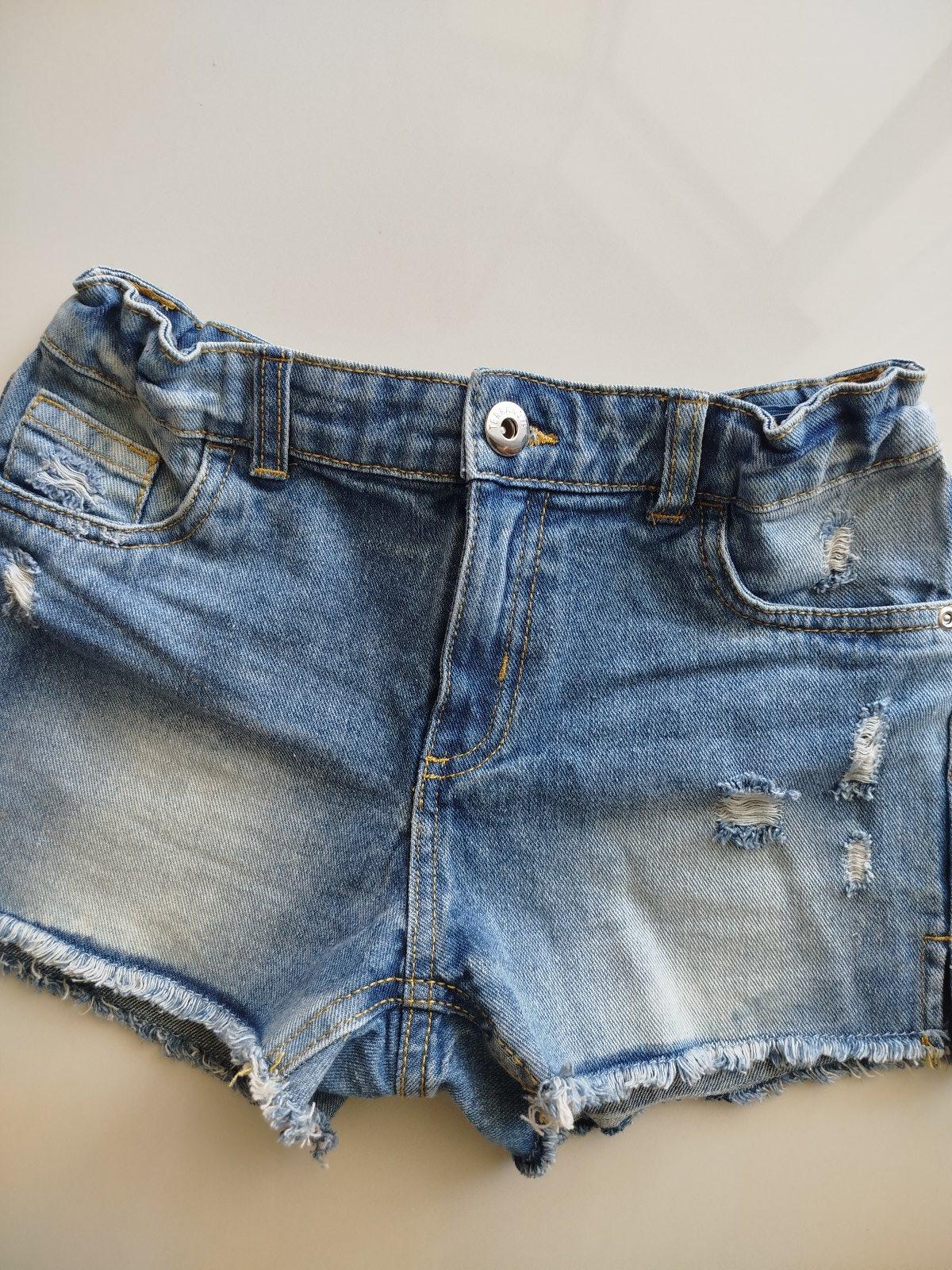 Kraťasy sú vo výbornom stave ako nové. Zapínanie na zips agobík. V páse je regulovateľná gumička. V zadu dve vrecká. Veľkosť 12-13 r.(152/158).