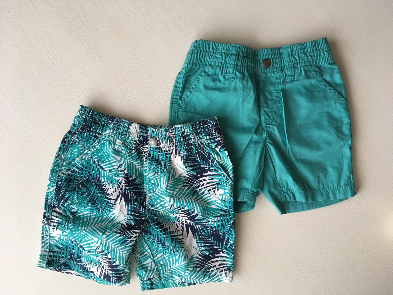 Sada dvoch šortiek, dvojčíslo 86/92- rozmery na foto. Vo veľmi dobrom stave, bez poškodení. V páse je guma, gombík je falošný.