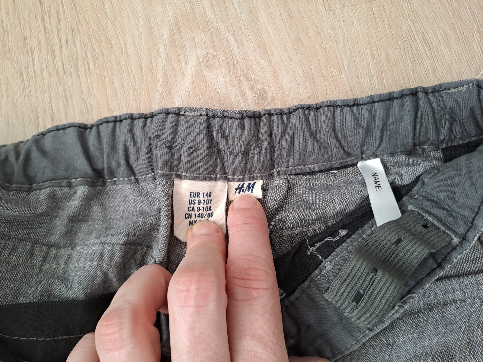 Predám trojštvrťové nohavice značky H&M, veľkosť 140. Boli minimálne nosené, nemajú žiadne známky používania. V páse majú reguláciu.