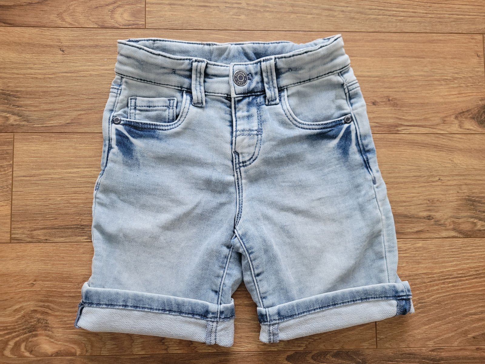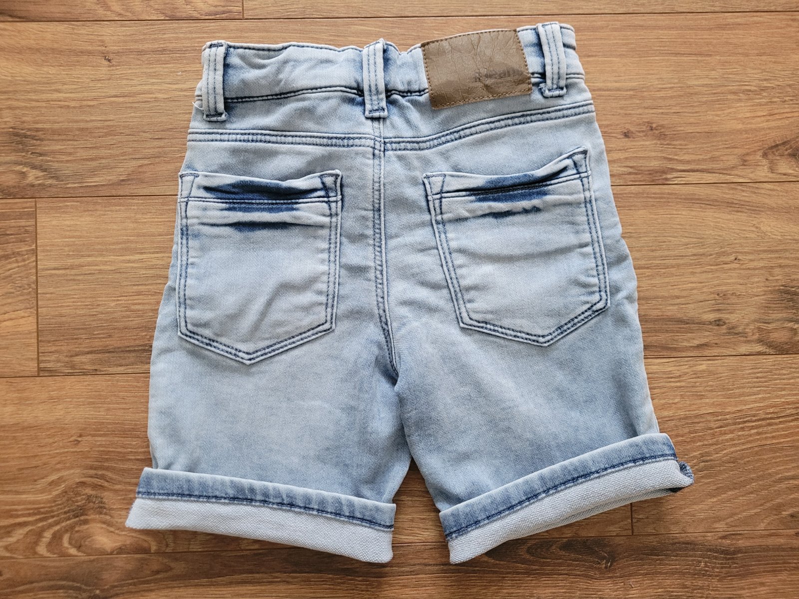 Krásne šortky bledomodrej farby. Veľmi príjemná mäkka rifľovina. Nosené veľmi málo. Regulovateľný pás.
