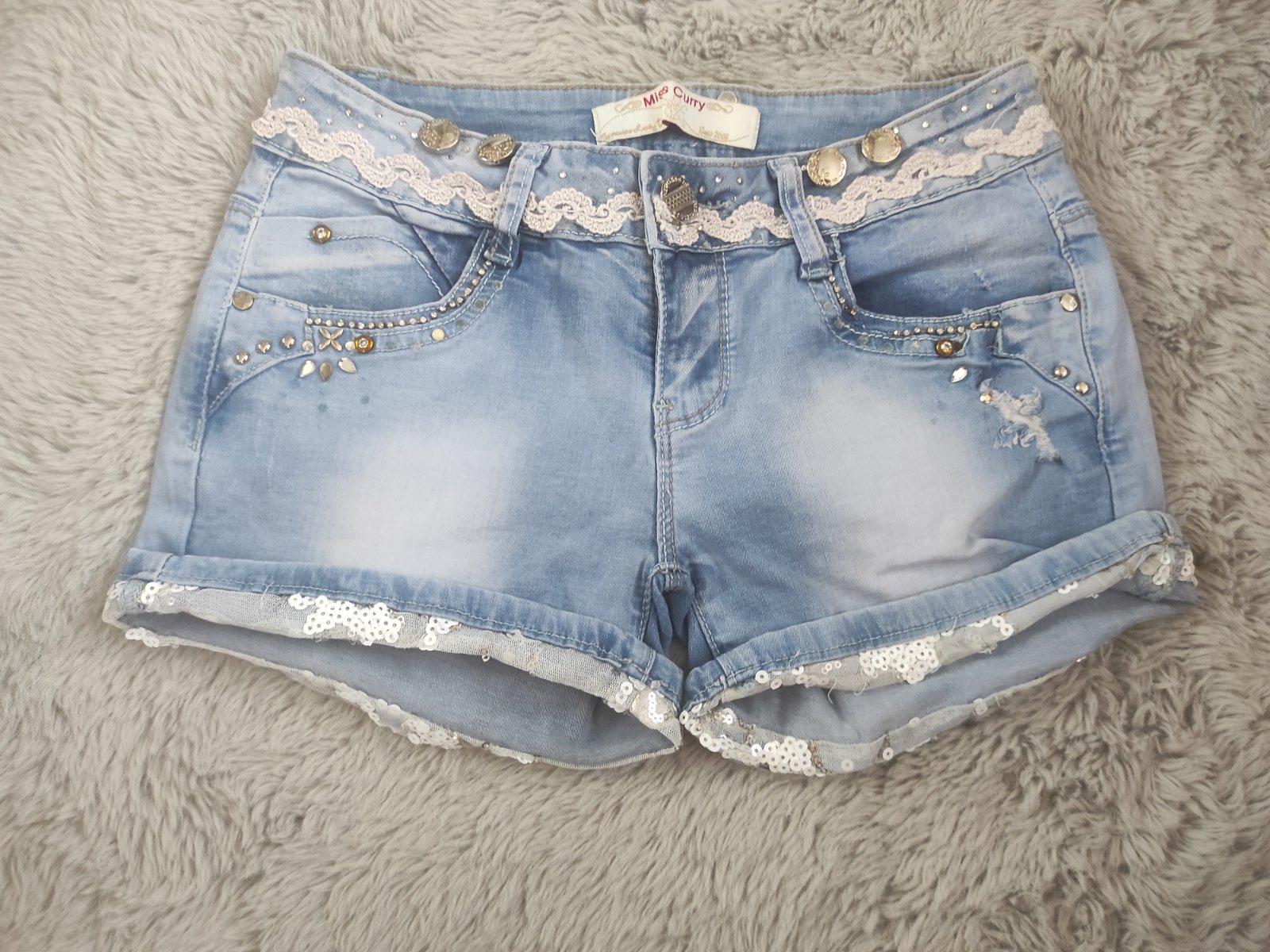 Predám úžasné kraťasky ...oblečené 2x..kúpené tu na MK ..si nádherné, tesne pod zadok, no ja ich už nezapnem.Velkost 28( podľa mňa pekne sadnú na S-M, riaďte sa mierami na foto) kamienky držia .Nie...