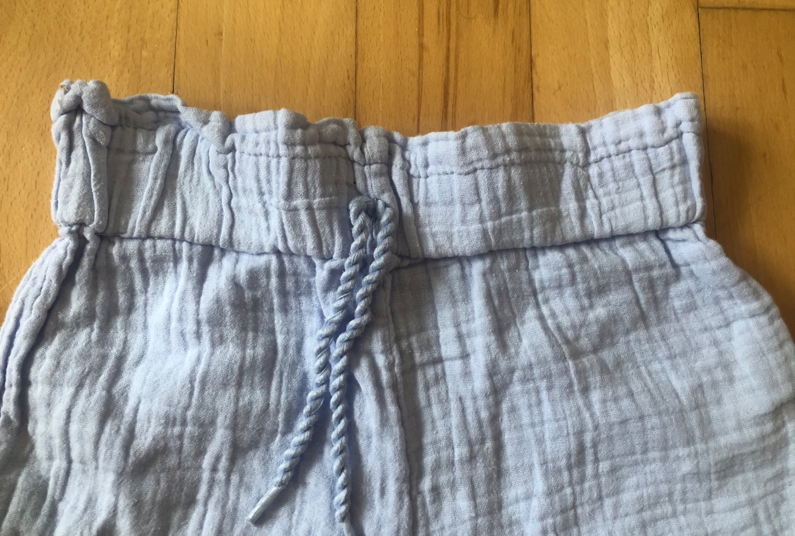 - párkrát nosené bledomodré mušelínové šortky