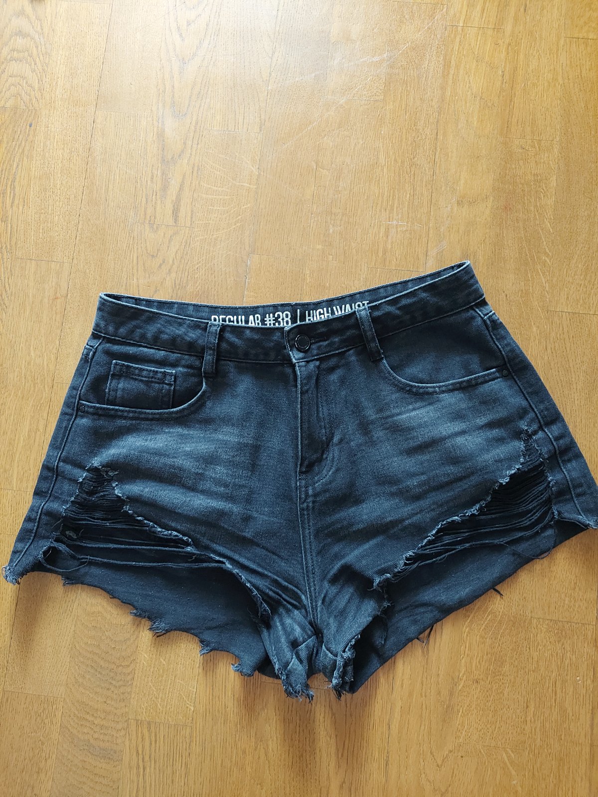 Krásne elastické kratasy, nenosené miery su klude 34cm v pase, ale su na gumu, dlzka 38,5 cm, sirka spodneho otvoru nohavice 25,5cm, po natiahnuti v pase na doraz majú 46cm