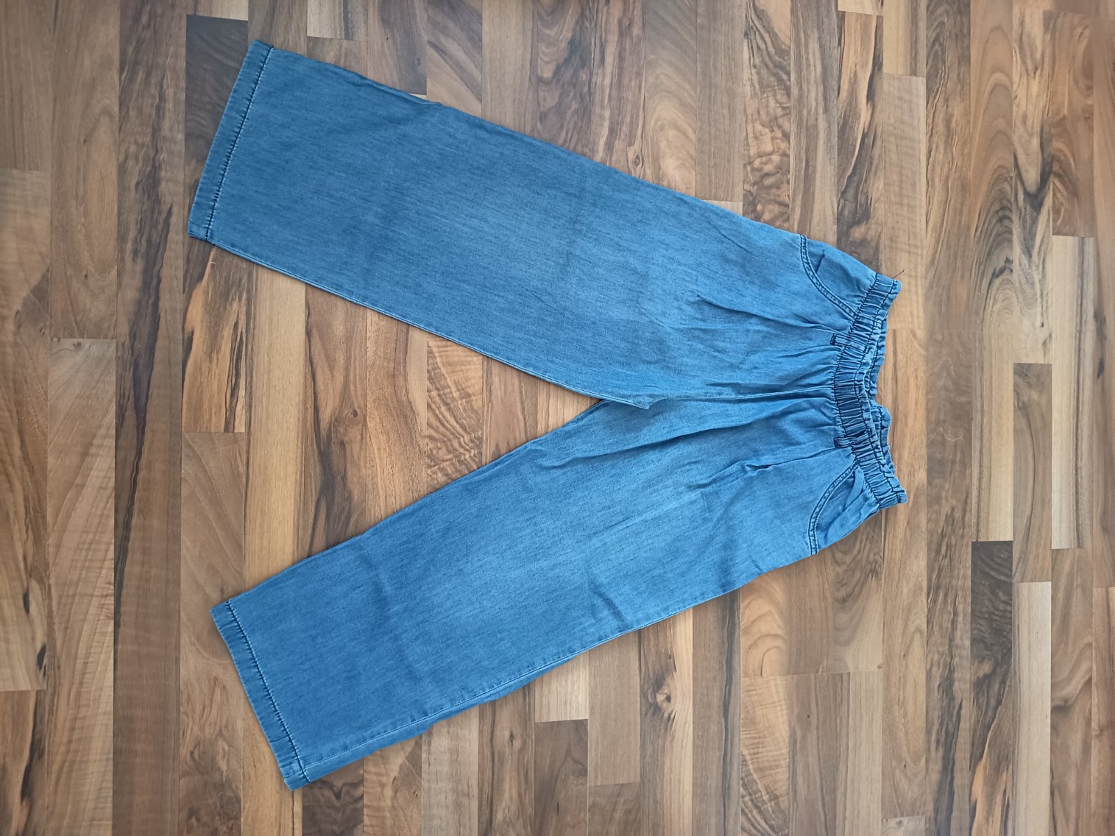Riflové trojštvrťáky s opaskom vo výbornom stave. Málo nosené. Štítok bol vystrihnutý, ale značka je pravdepodobne Takko. Dĺžka 59 cm, pás 31 cm, ale dá sa uvoľniť (viď foto: nastaviteľná guma), dĺ...