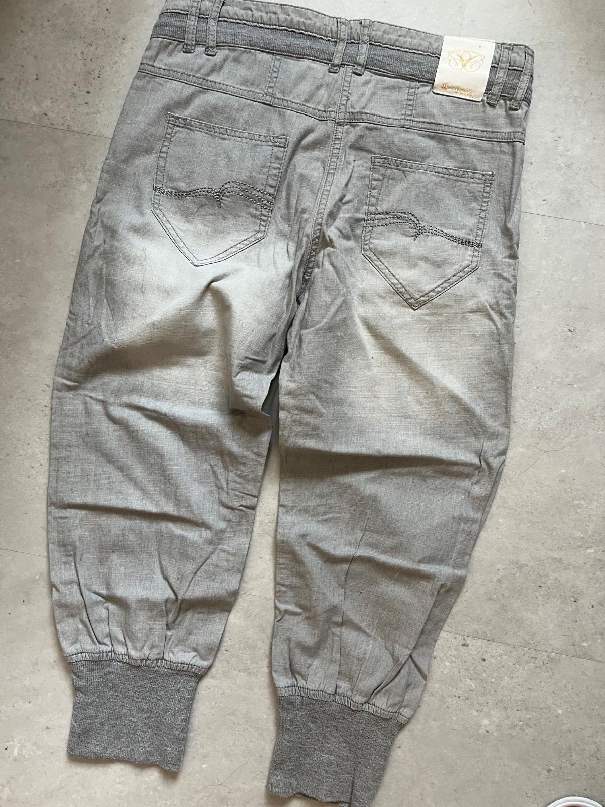 Krasne pohodlne nohavice. Malo nosene. Ako nove. Super sedia na postave. Zial mne su uz male. Prijemne na dotyk Bez poskodenia Sirka v pase 41cm Cez boky 51cm Dlzka nohavic 61 cm Velkost na stitku 38