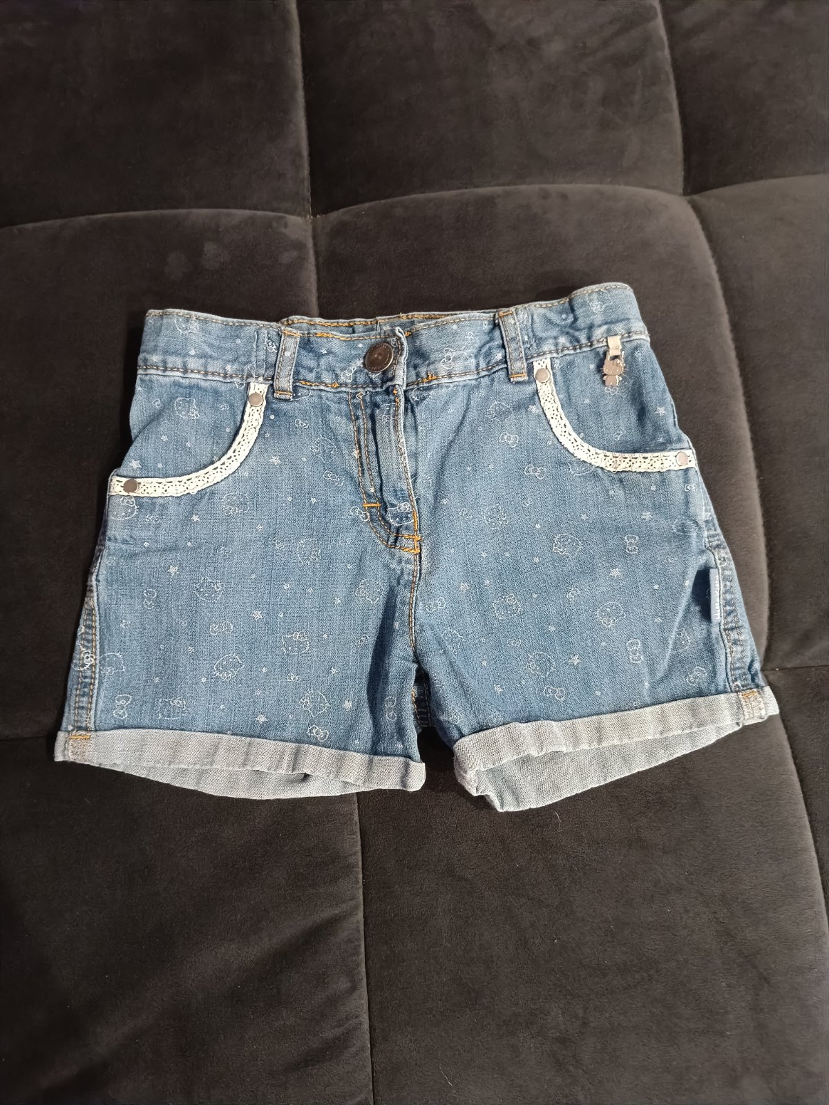 Predám krásne dievčenské šortky HELLO KITTY, veľkosť je 5/6 rokov. Zapínanie je na zips a gombičku, pás sa dá stiahnuť. Sú vo výbornom stave, bez poškodení. (V bazári ponúkam aj veľkosť 7/8 rokov.)