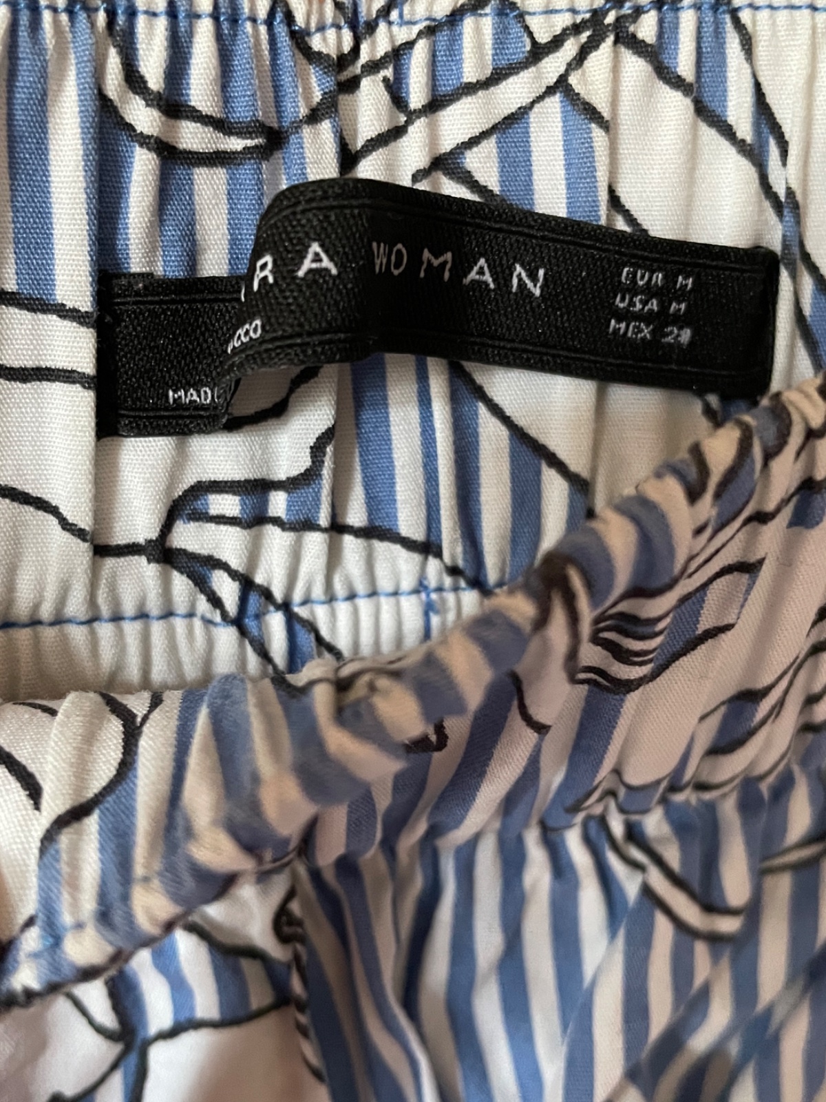 Modrobiele pásikavé letné široké bavlnené kulóty M
