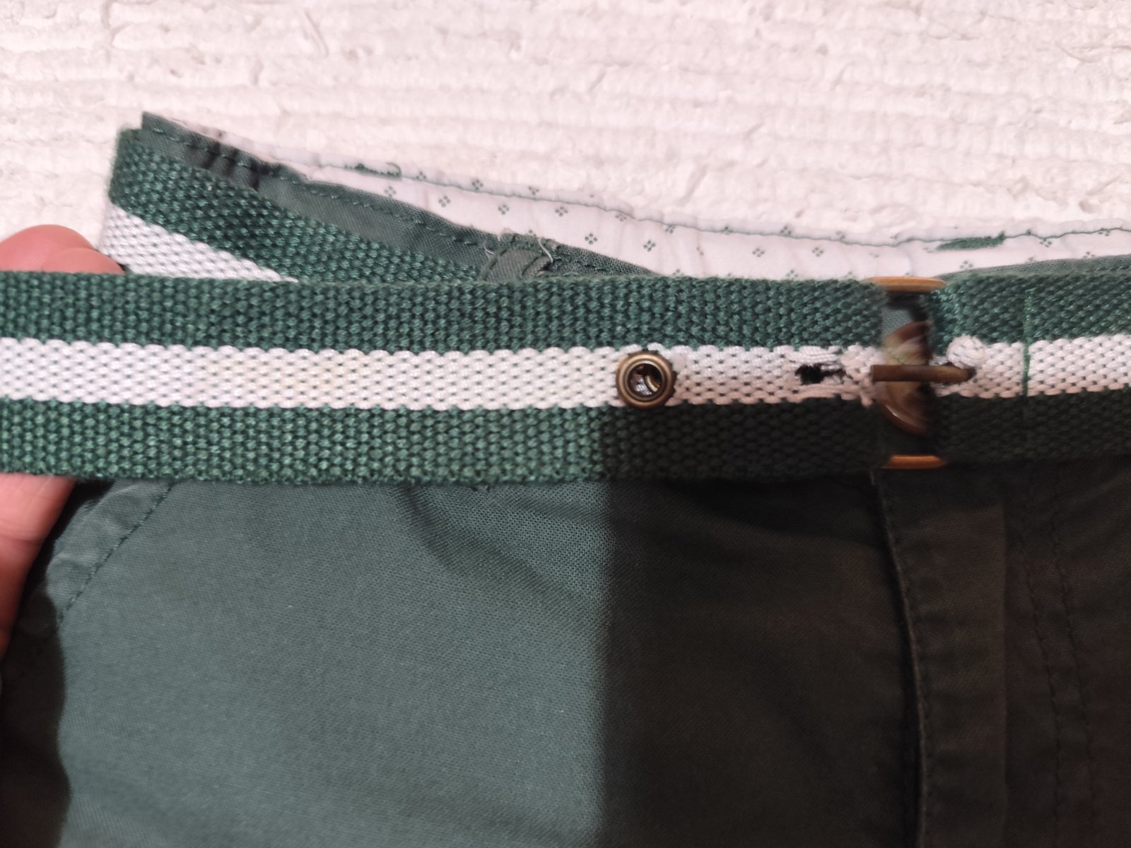 Krásne, letné kraťasy v zachovalom stave. Nosené boli príležitostne. Jediná vada, dierka na opasku, viď foto. Vypadlo to plechové ukončenie. Rozmery viď foto.