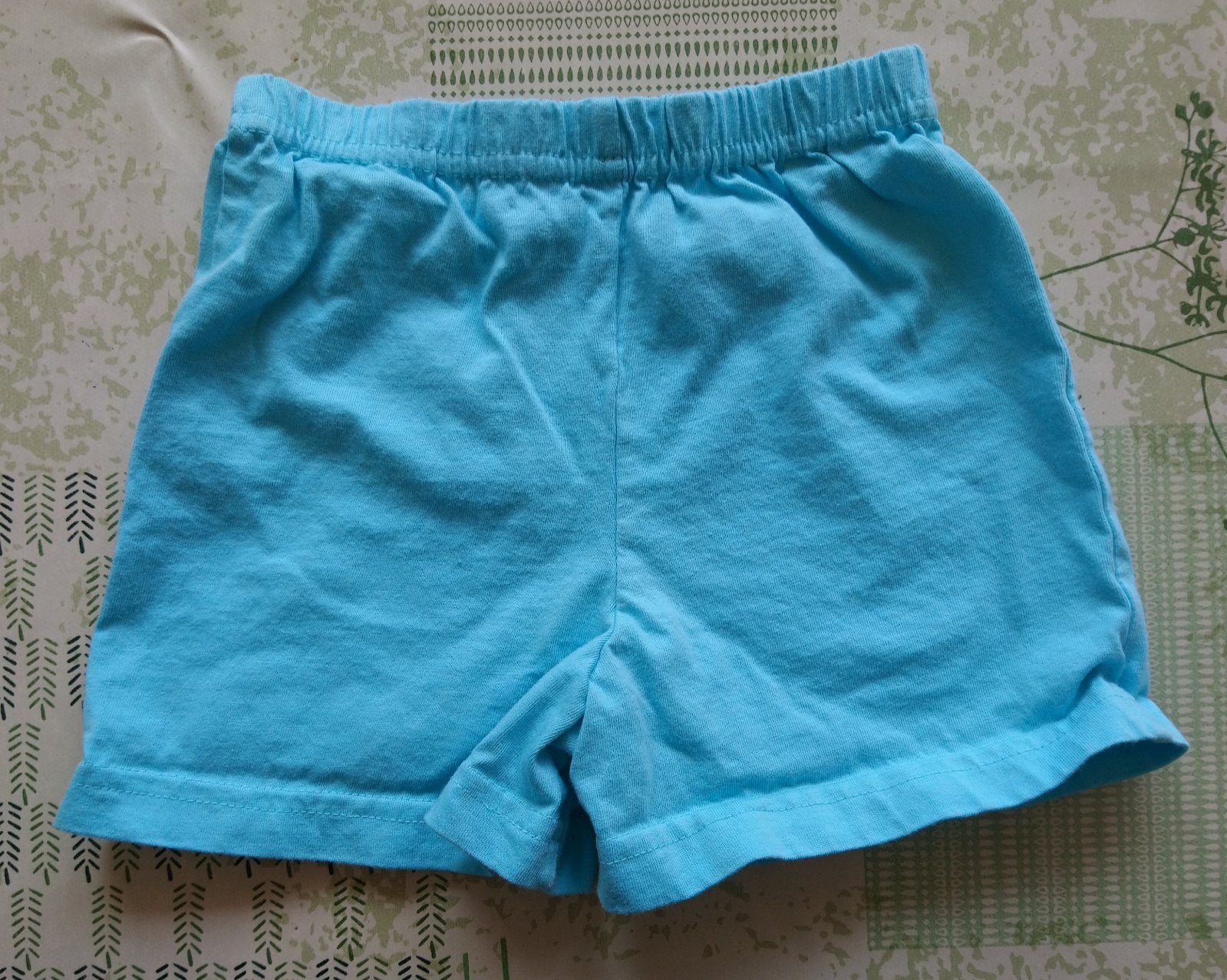 Modré kraťasky s kvetinkou, M, 74-80 cm