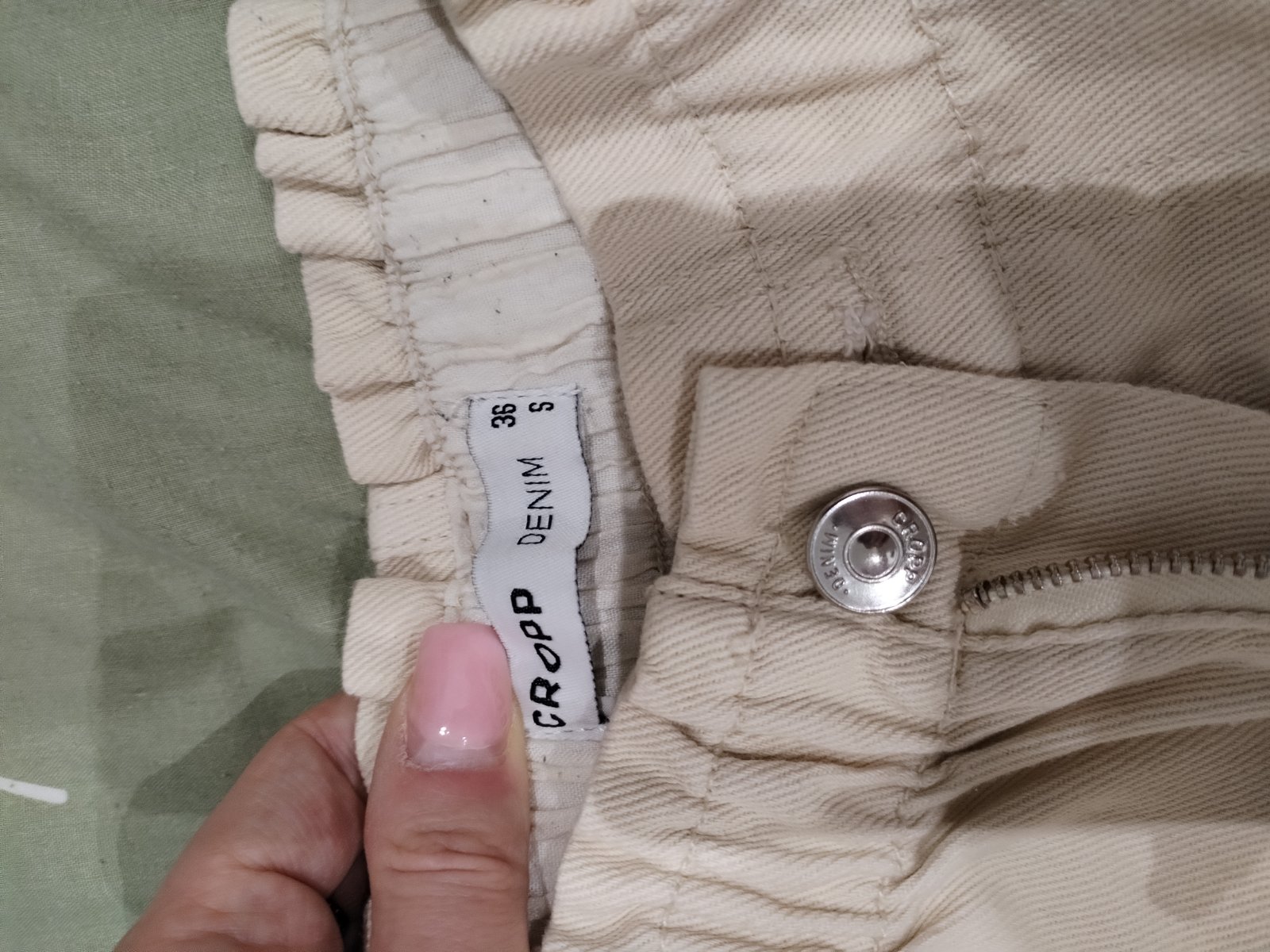 khaki farba /ako na hlavnej foto/, pás pevný, v páse šnúrka, dá sa stiahnuť, po bokoch vrecká, super stav materiál: 55% ľan, viskóza veľkosť: č.36 rozmery:od pásu nadol 34 cm,od rozkroku dole 11 cm...