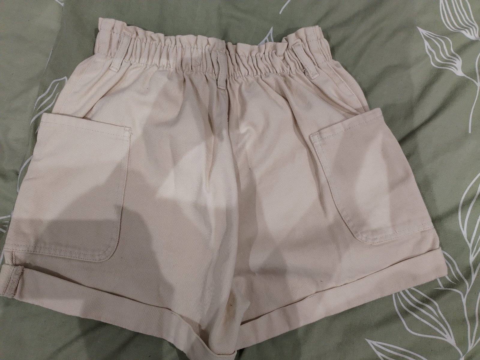 Kratasy s vysokym pasom,bez poskodenia,latka je elasticka,pas 31x2 cm, boky 36x2cm.