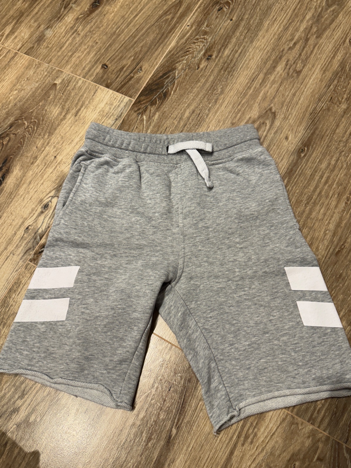 Predám používané, nepoškodené, nezničené teplákové tenké bavlnené kraťasy s vreckami, gumou a šnúrkou v páse, veľ. 134, zn. H&M, rozmery - pás 30 cm, d 44cm.