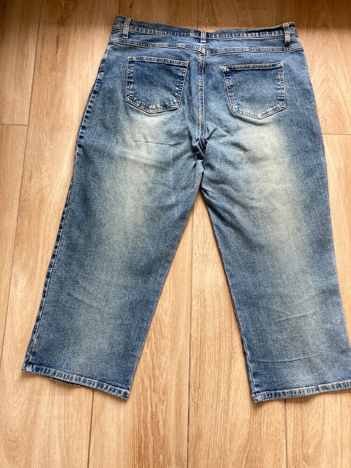 Predám veľmi pekné trojštvrťové nohavice.Rozmery pás 90 cm je na gumičku dá stiahnuť opaskom, boky 110 CM, dĺžka sed 36 CM, celková dĺžka 73 cm