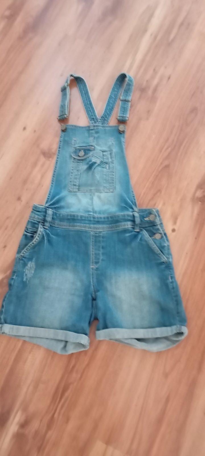 Predám riflové kraťasy v perfektnom stave šírka v páse 36 CM , dĺžka od pásu dole 33 CM , horná časť po pás 43 CM ,ale ramienka regulovatelne