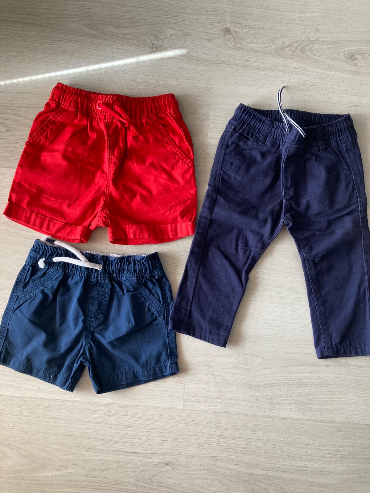 Predám dlhé gate na šnúrky zn Idexe 12 mesciacov, George červené krátke 86-92 a modré krátke F&F veľkosť 86, takmer nenosené oblečené asi 1x