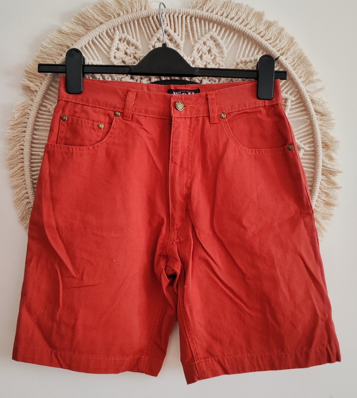 Cervene riflove kratasy - kratke nohavice velkost 38 sedi na M dlzka 38 cm pas 39-42x2 boky 44-48x2 97% bavlna 3 % elasten B30 at