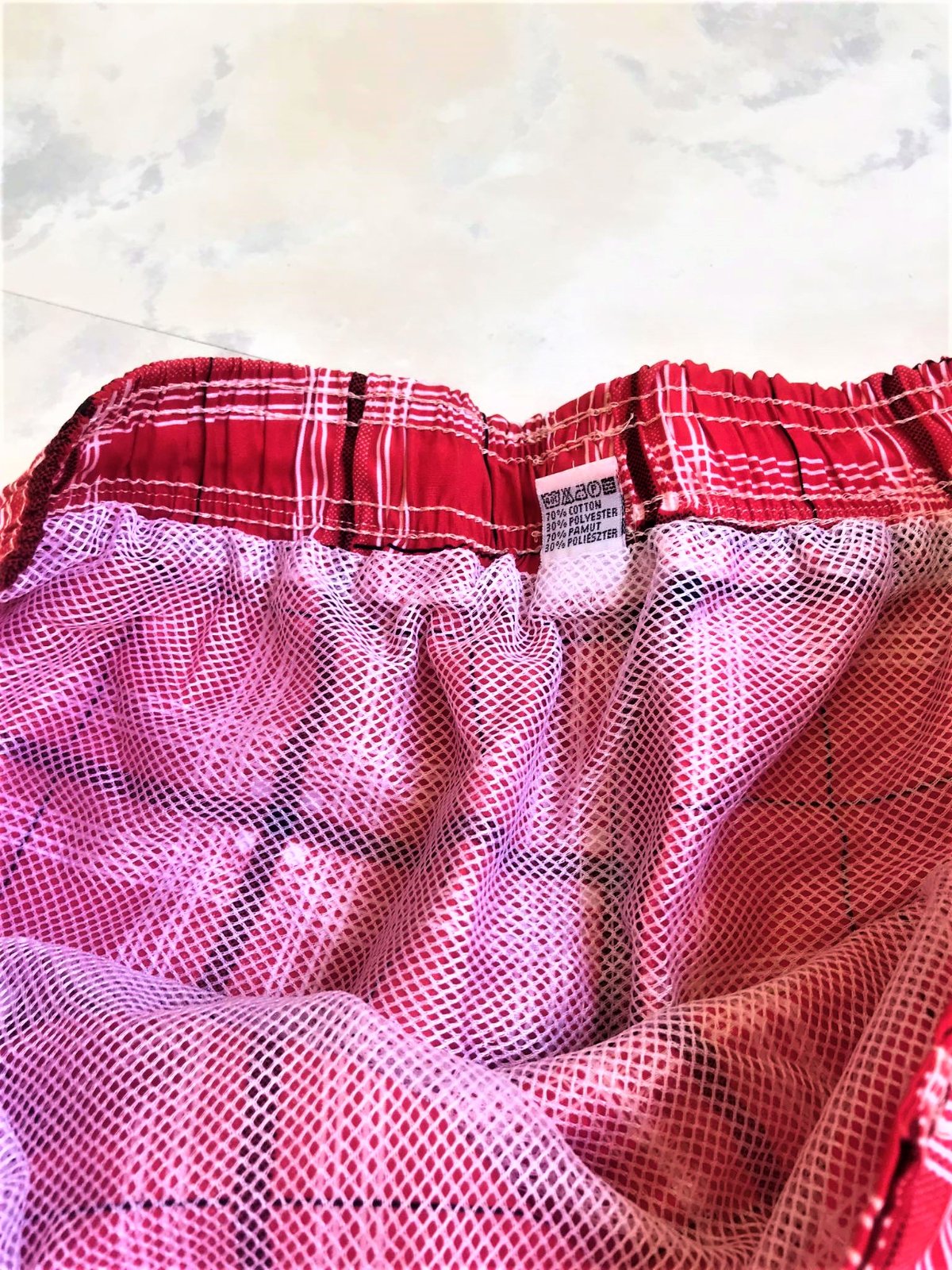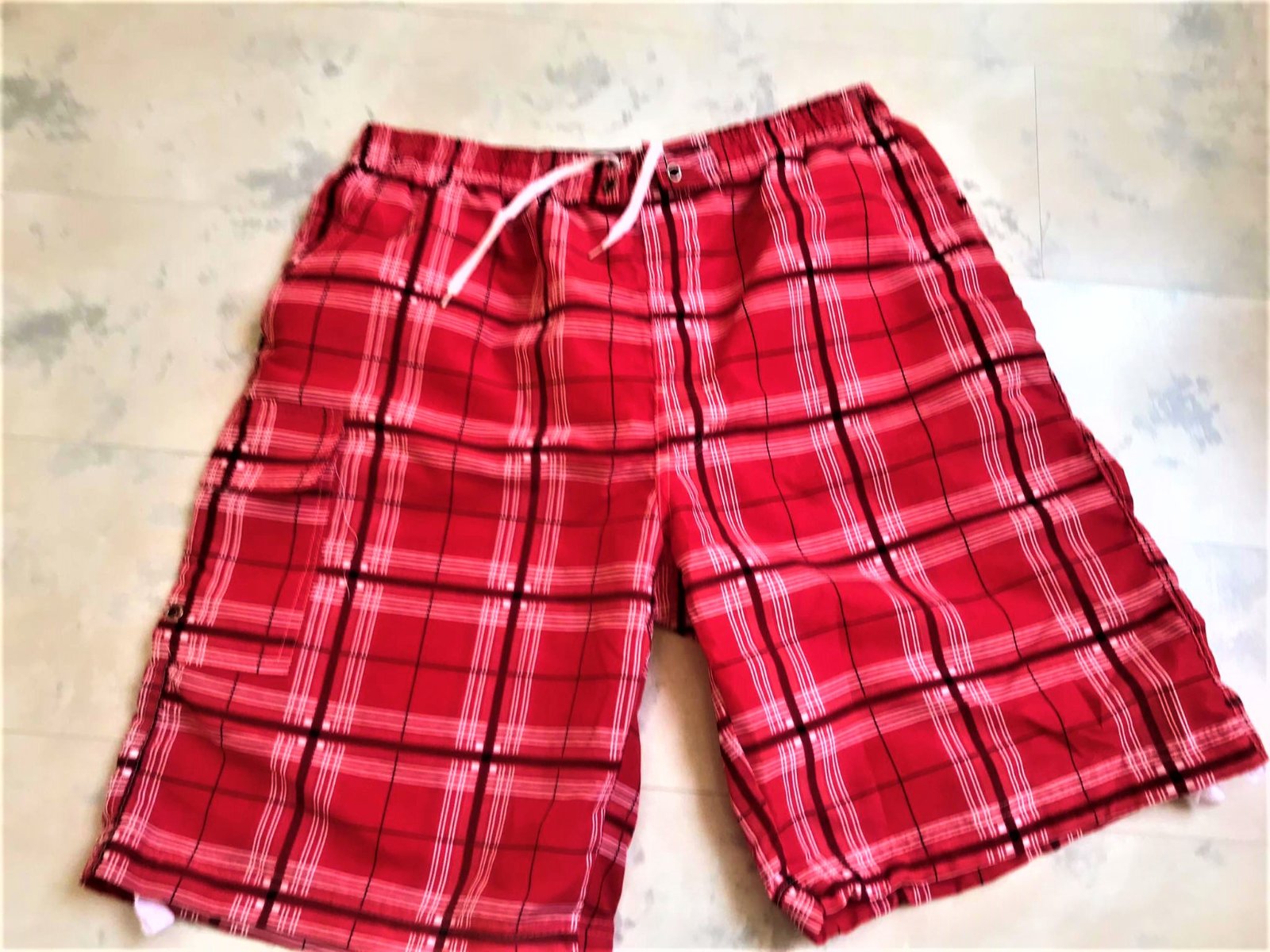 pestré šortky/ plavky ,neznosené,so sieťkou dnu,vhodné ako šortky ale aj ako plavky,ľahúčky nekrčivý kvalitný rýchlo schnúci materiál,na boku vrecká
