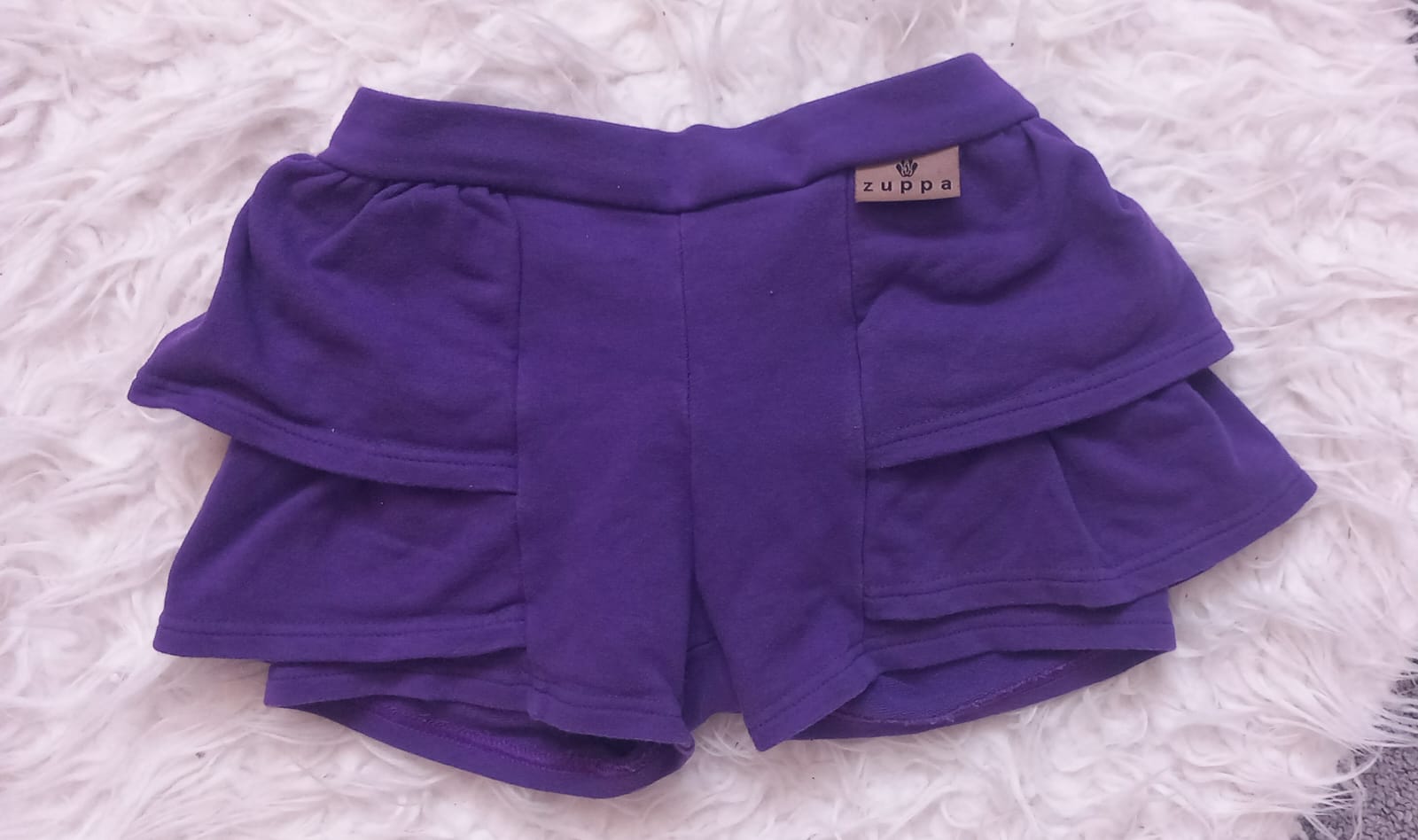 Pekné kraťasy, nebadať žiadne známky nosenia. Pekný motív známej rozprávky, sú bavlnené, poddajné. v páse je guma. Dĺžka: 25, Šírka: 2x 24 je možné i oveľa viac. Sú bledo fialové.