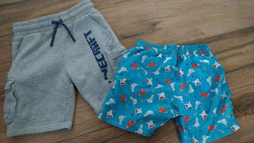 Predam teplakove kratase s povodnym napisom MINECRAFT / 7-8r. a plavky velk. 122/128