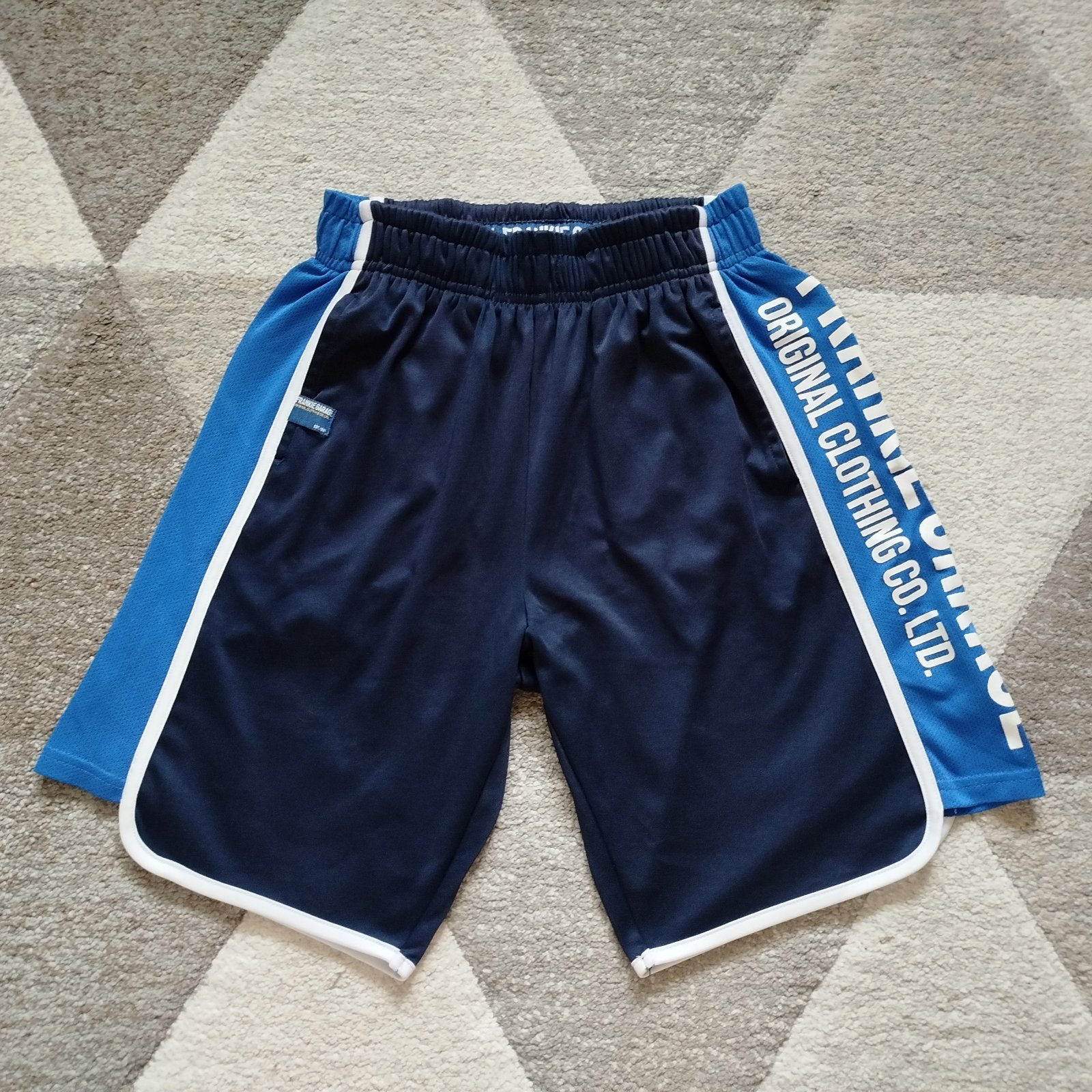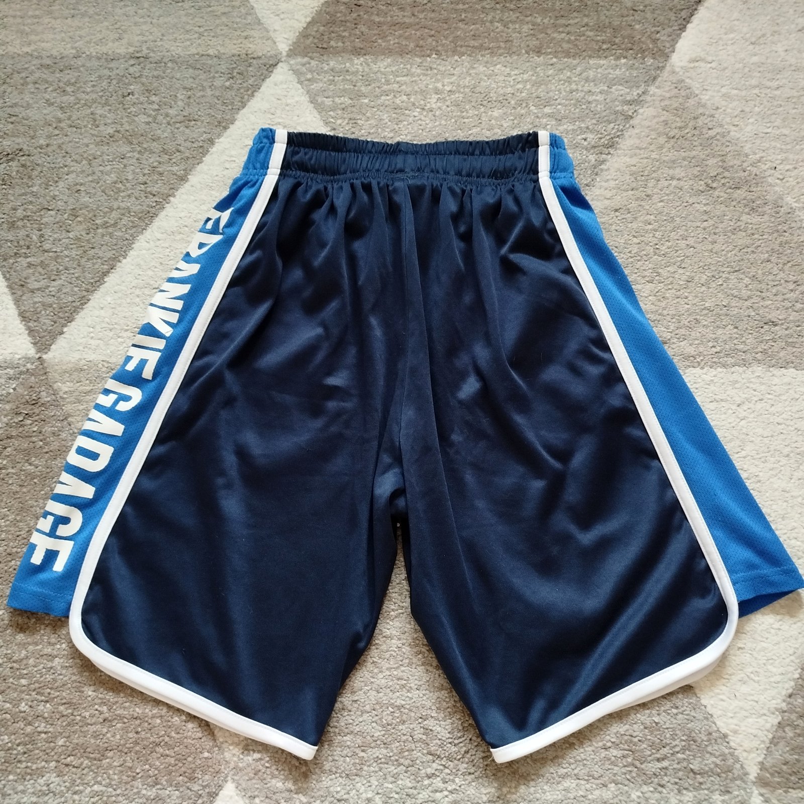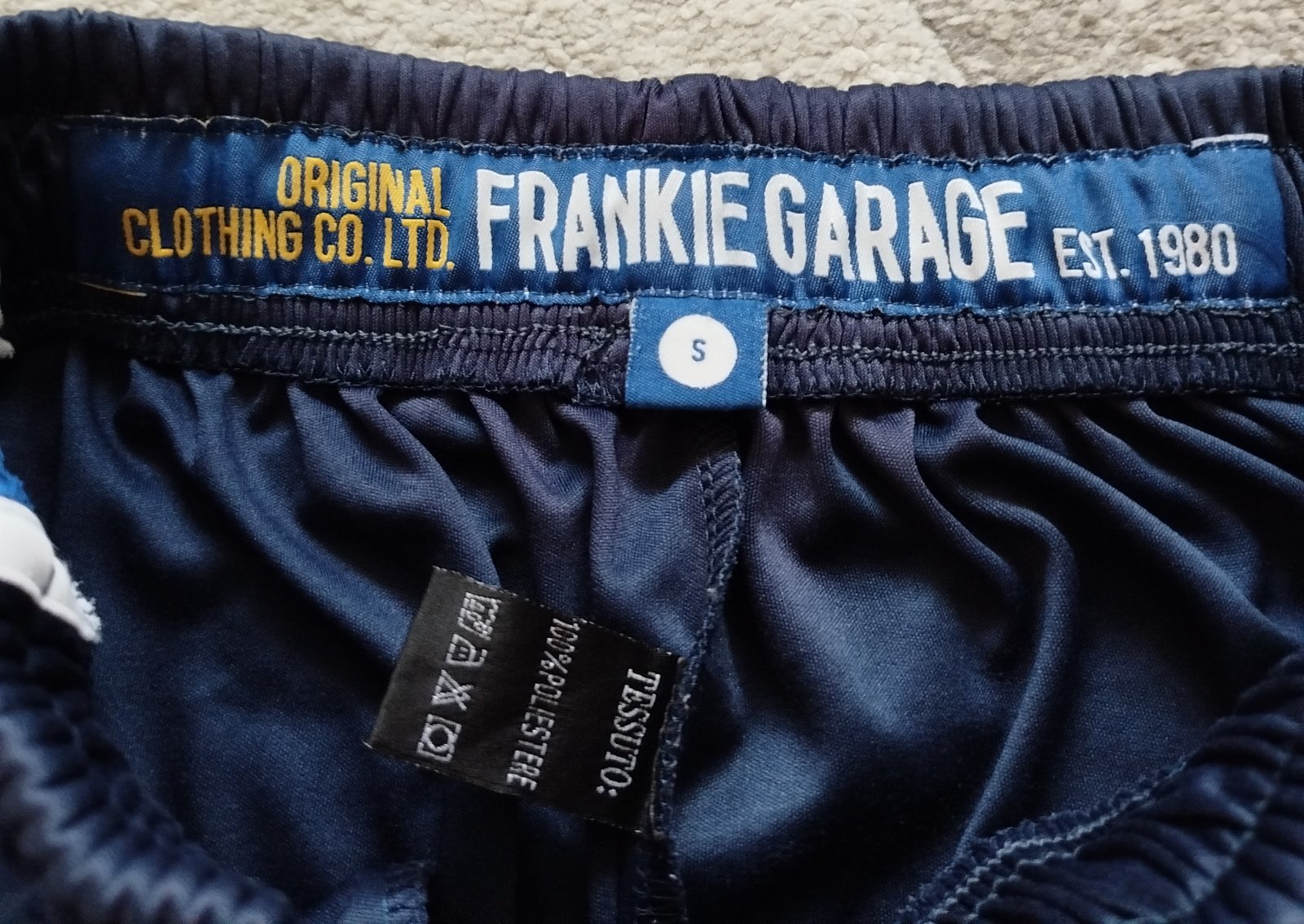 Značkové športové kraťasy Frankie Garage originál, veľkosť S, pekný nosený stav. Dĺžka 50cm, pás v kľude 31cm a natiahne sa do 38cm. Slabo modré boky sú sieťované, sú vzdušné a pohodlné. Cena + pošta.