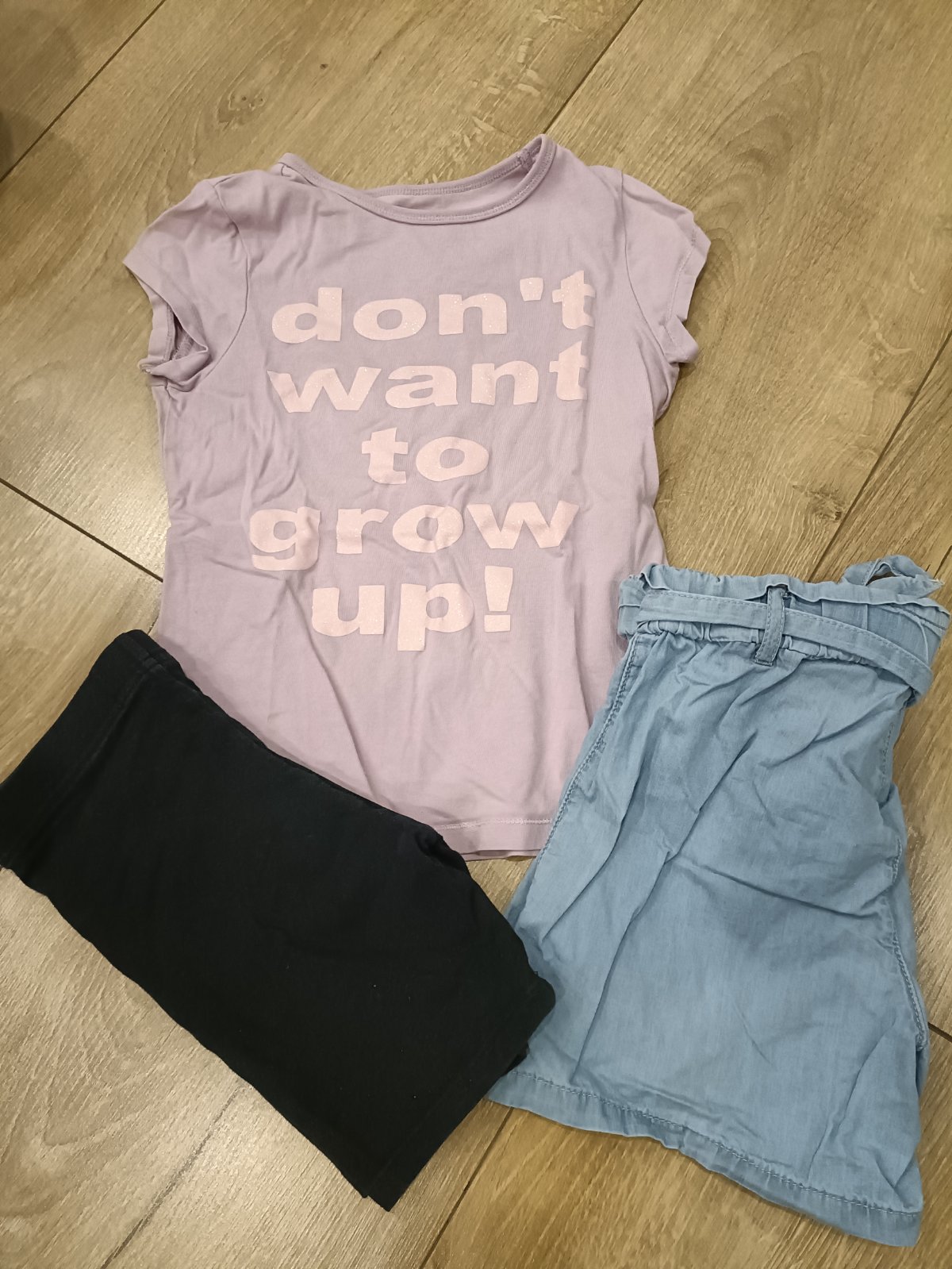 Riflové šortky, legíny,k tomu tričko,spolu 4e.super stav