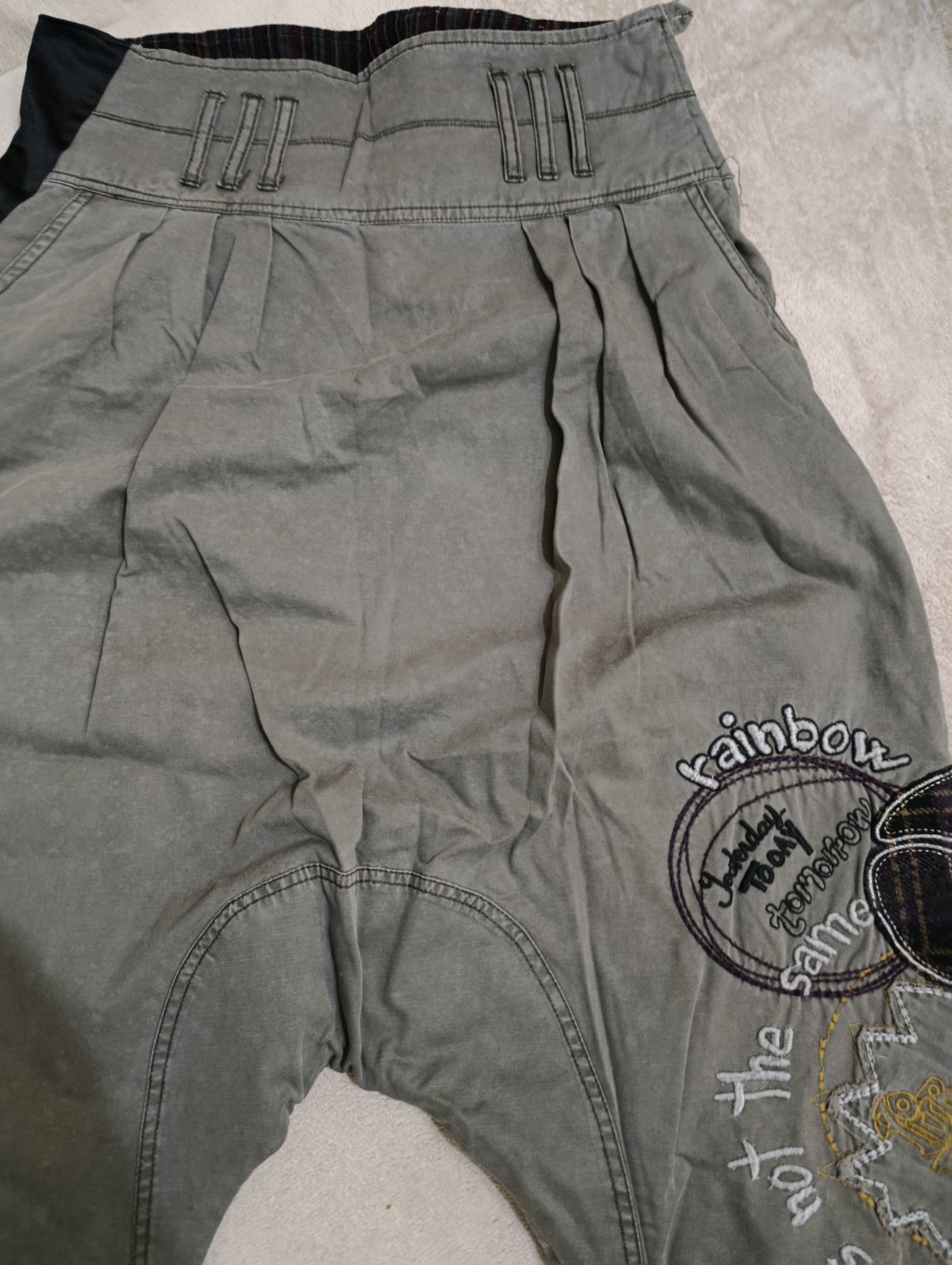 1.Predam maskacove nohavice,dobry noseny stav.Pas 2 krat 38cm,dlzka nohavic 65 cm. Vpredu chyba jeden gombik. Cena 3 eura+postovne.