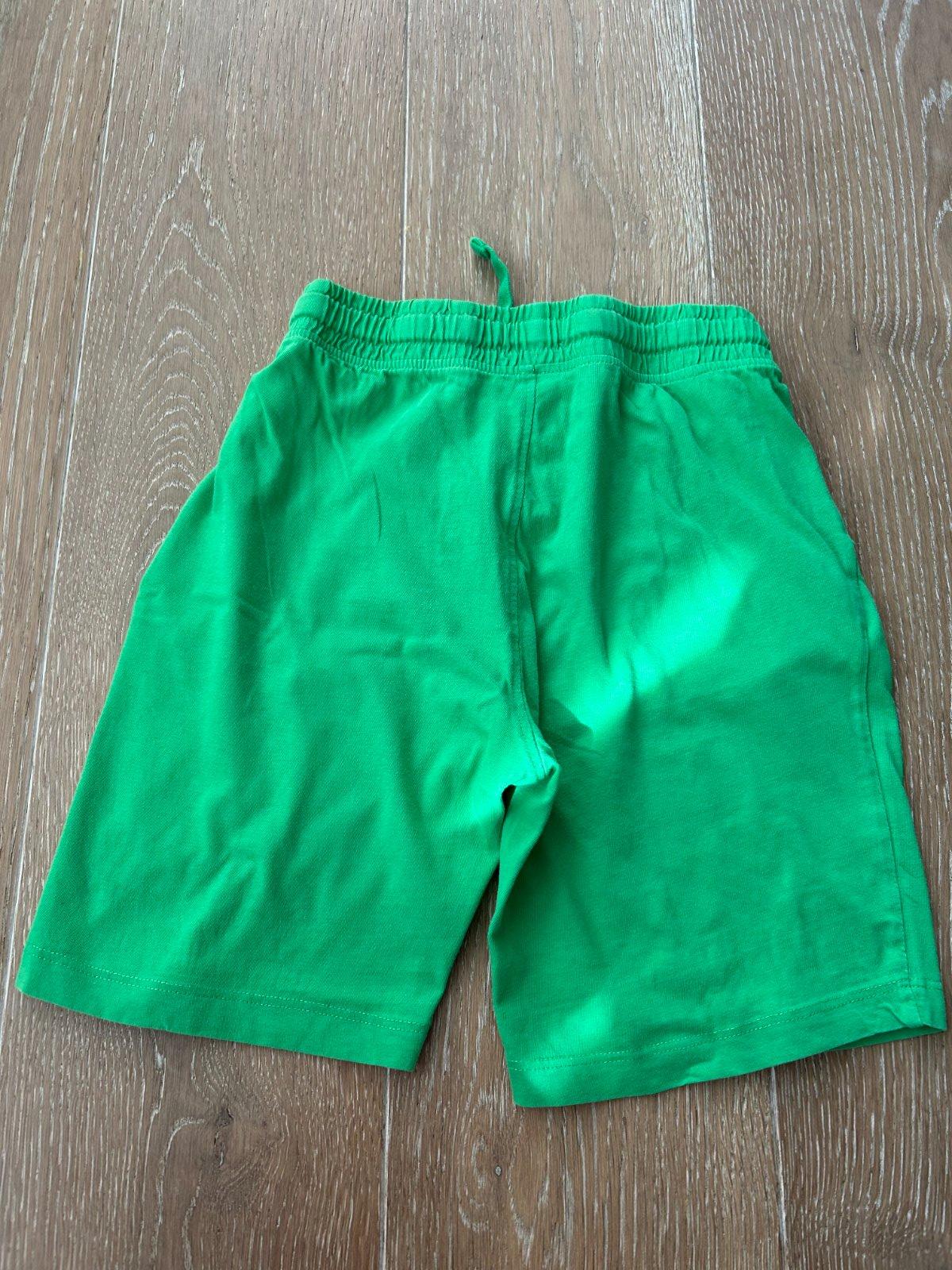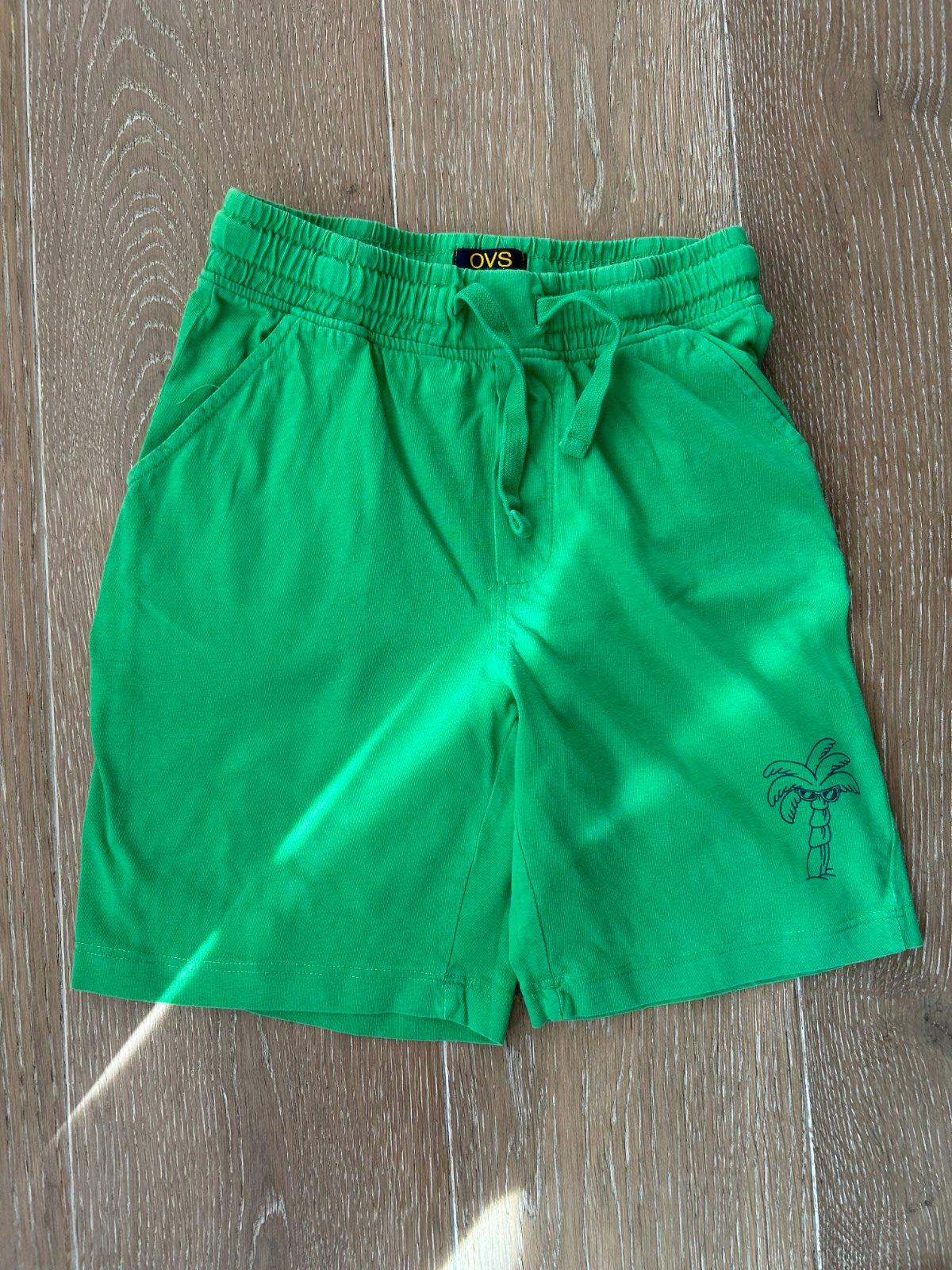 Veľmi zachovalé zelené šortky zn. OVS z jemnej bavlny bez poškodenia. S dvoma postrannými vreckami. V páse s všitou gumou a šnúrkou na zaväzovanie.