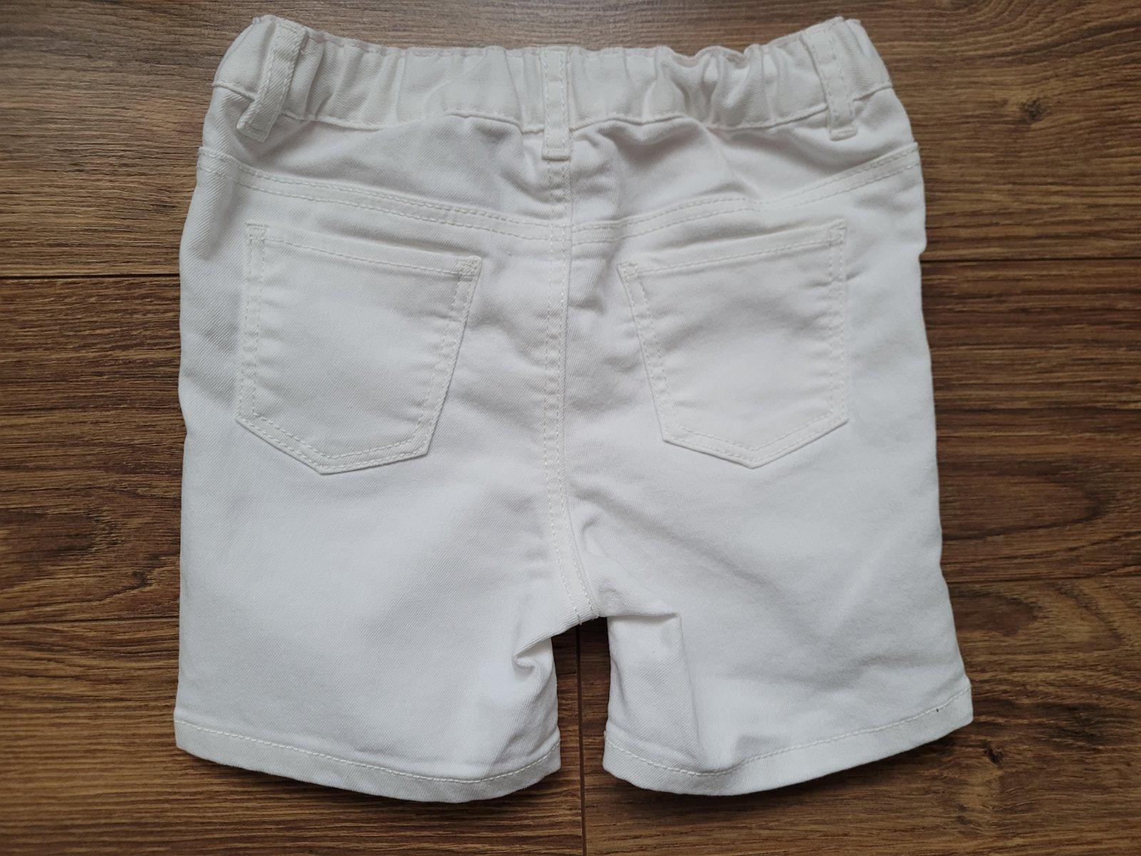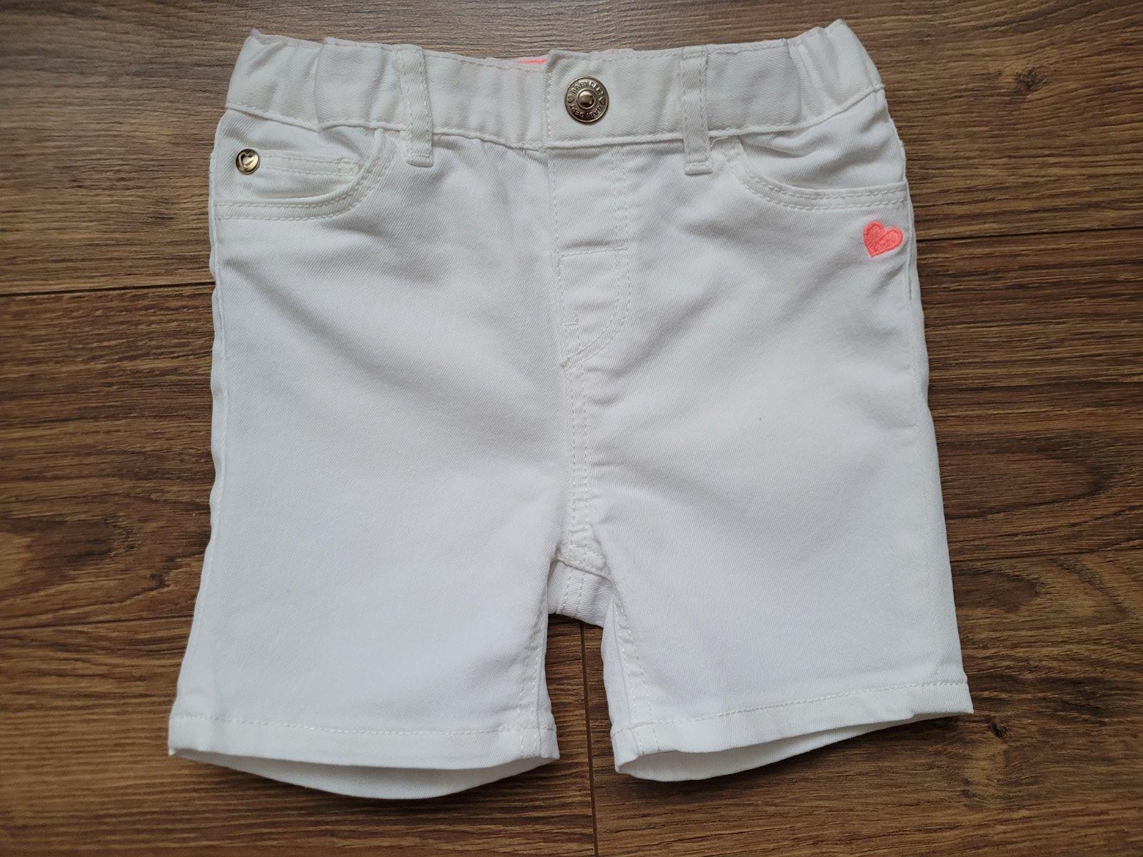 Biele bavlnene kratasky s fodrickou na zadnej strane. Krasne ukazu oblecene.Pisana je velkost 12-18 mesiacov. Material: 98% bavlna/2% elastan. Pas: 21cm Dlzka: 17cm