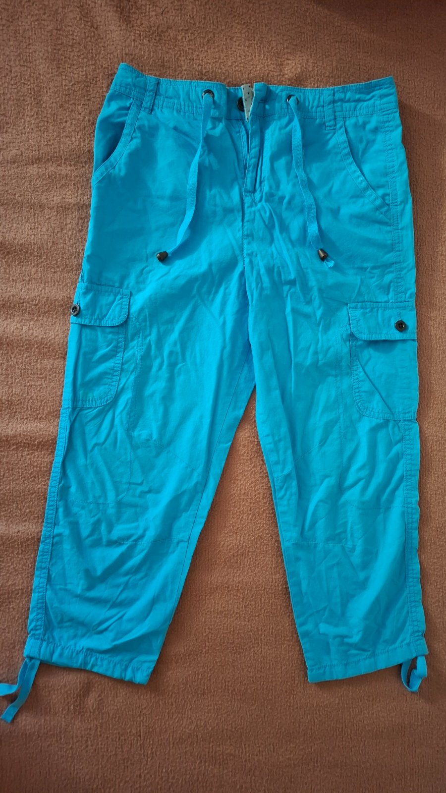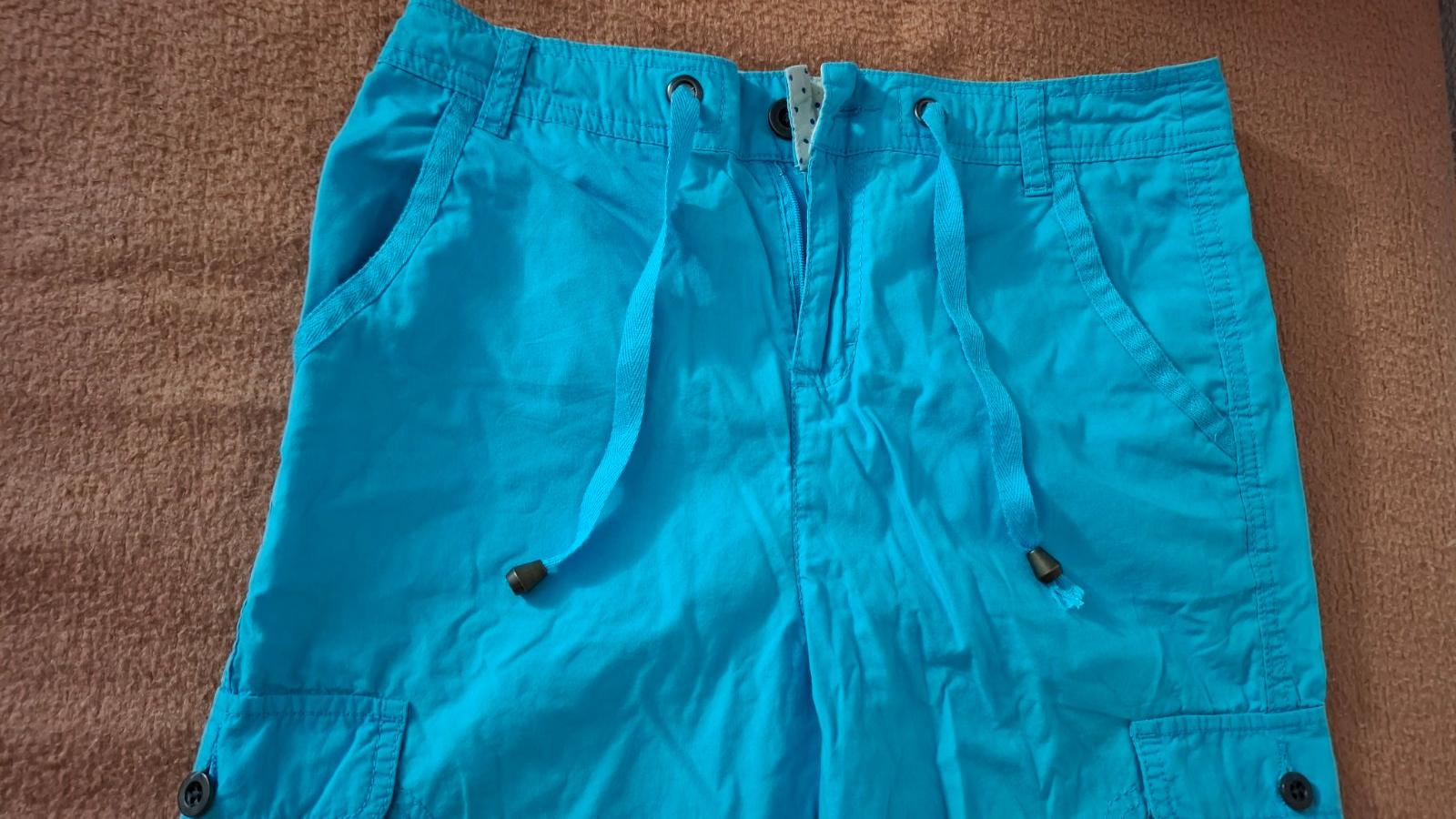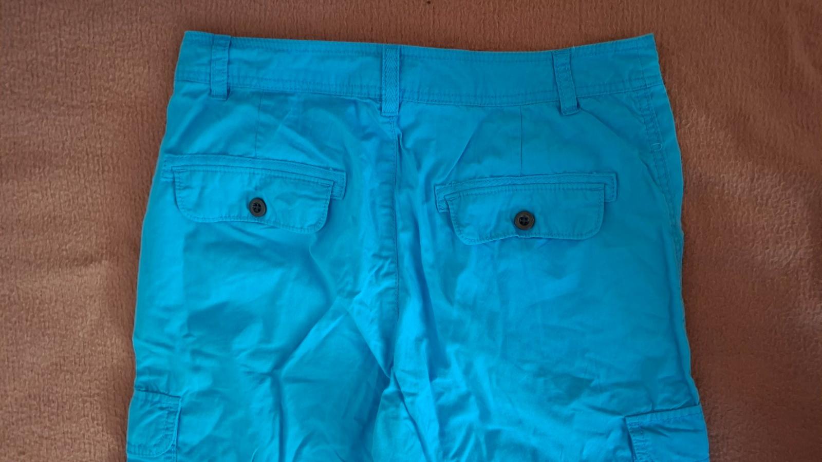 Dámske 3/4 nohavice. Bez poškodenia. Po bokoch dve vrecká, dve "kapsáčové" vrecká a vzadu dve vrecká. Dĺžka 77 cm. Obvod pása 38x2 cm.