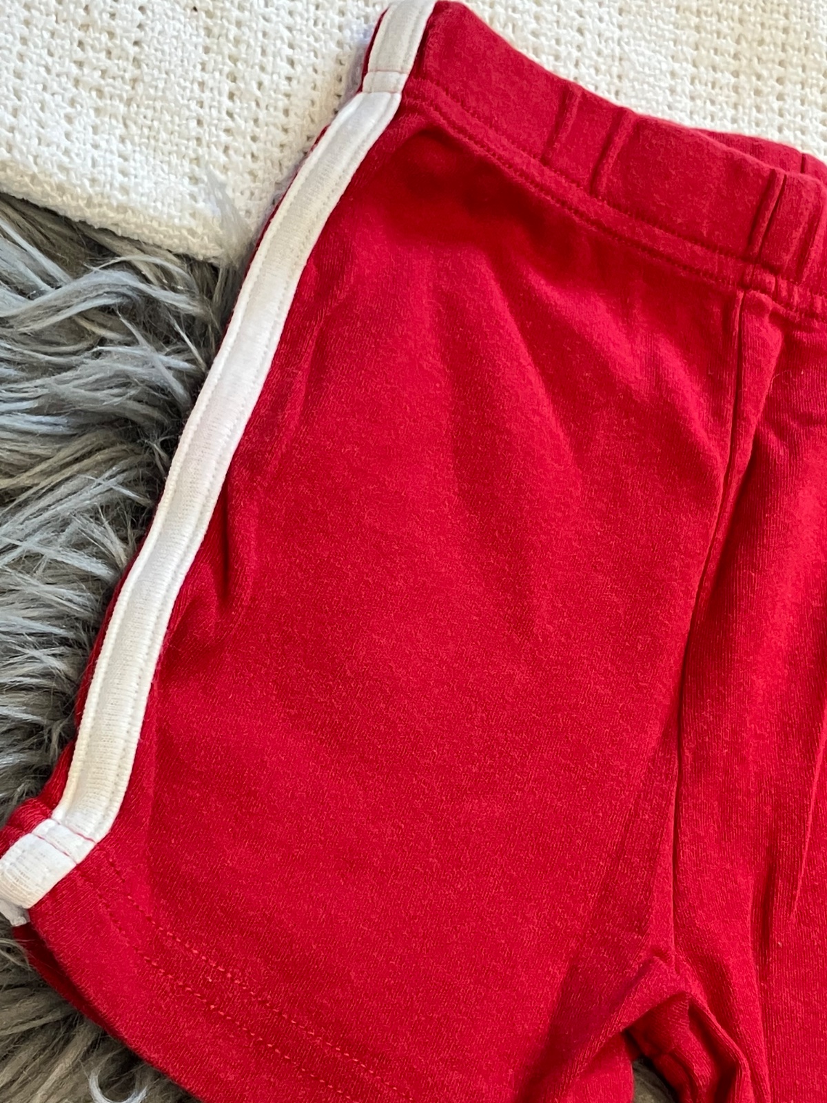 Chlapčenské teplákové šortky, červeno biele, elastické, pás na gumu, materiál 100%bavlna.