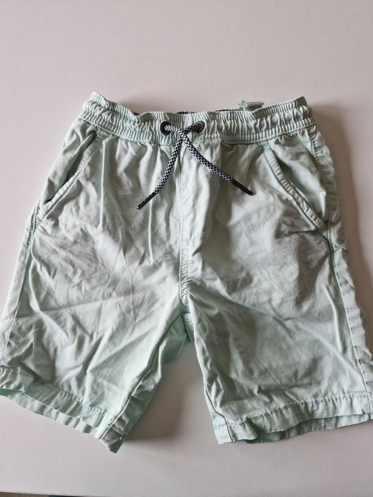 Nosené kraťasy na 3-4 roky. Prvé s pásmi v mätovej farbe, dĺžka je 32,5 cm - 1,50 eura. Ušla šnúrka (je vnútri). Šírka v kľude je 23 cm. Ostatné - predané
