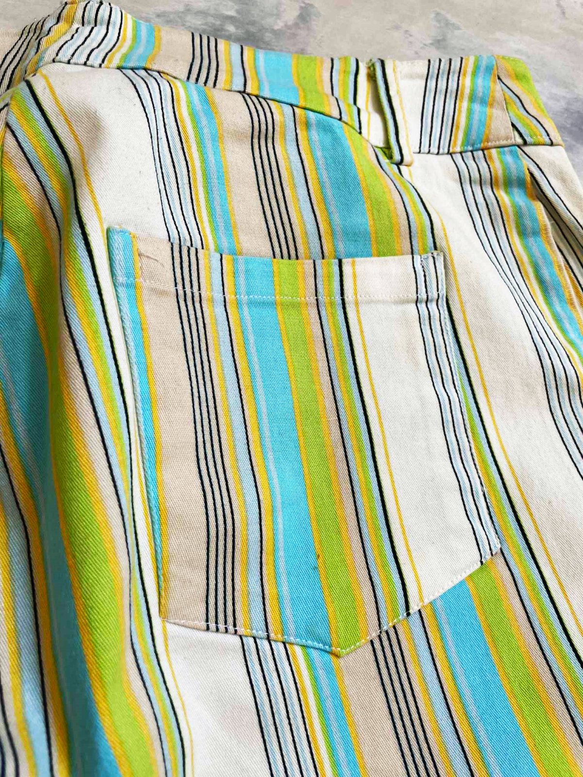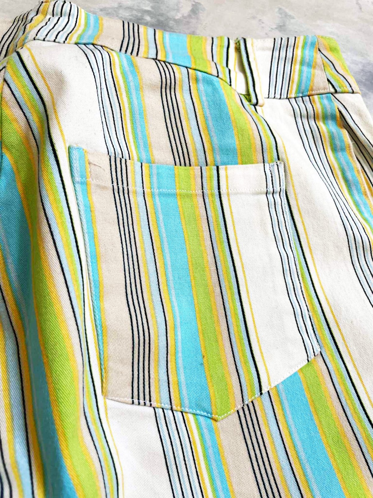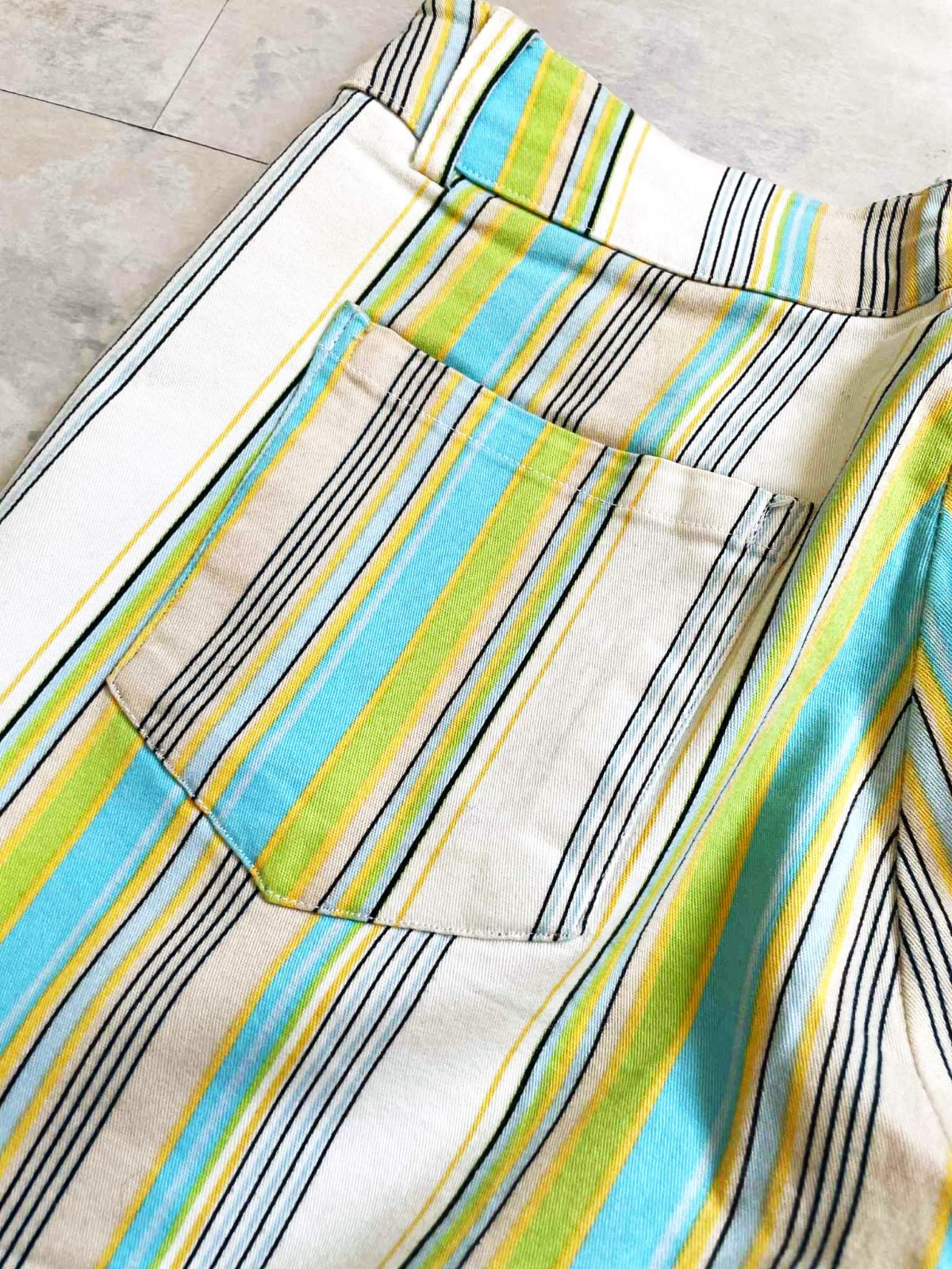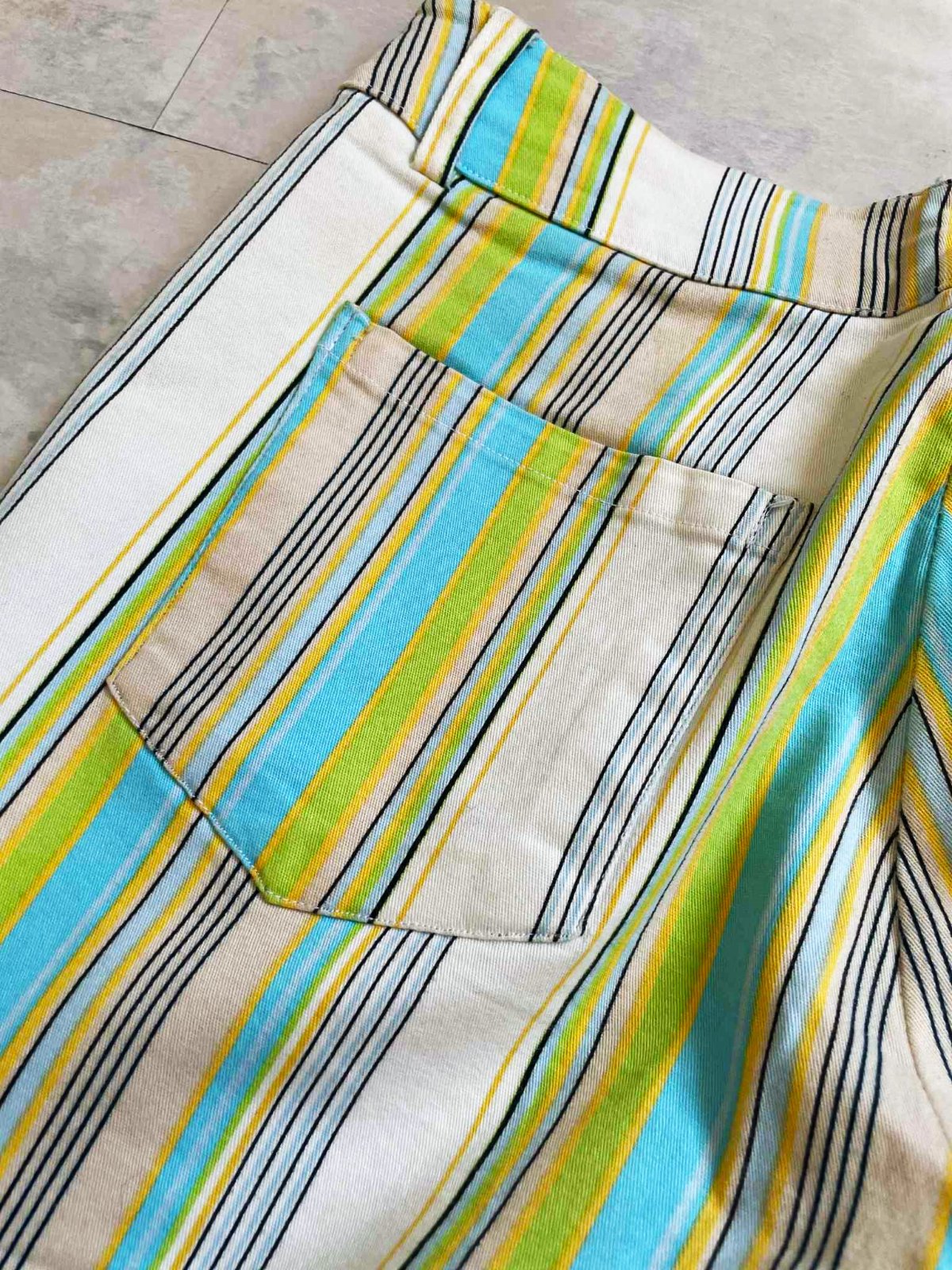 neznosené,kvalitné 3/4 nohaviceso strečom,dole rovné - jemne rozšírené,na spodku neobtiahnu nohu,veľmi pekné farby,prúžky krásne tvarujú a zoštíhľujú,top stav a kvalita,ako nové
