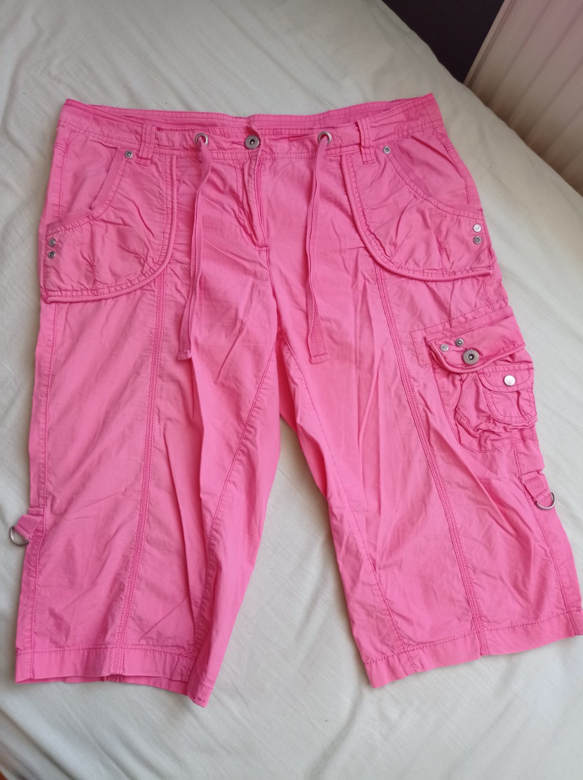 Nohavice dobrý nositelny materiál aj na teplejšie počasie .obvod pas 44x2 ,obvod boky 53x2 ,dĺžka 87cm sú skôr trojstvrtove podľa výšky postavy bez poskodeni ako nové asi 3 krát oblečené