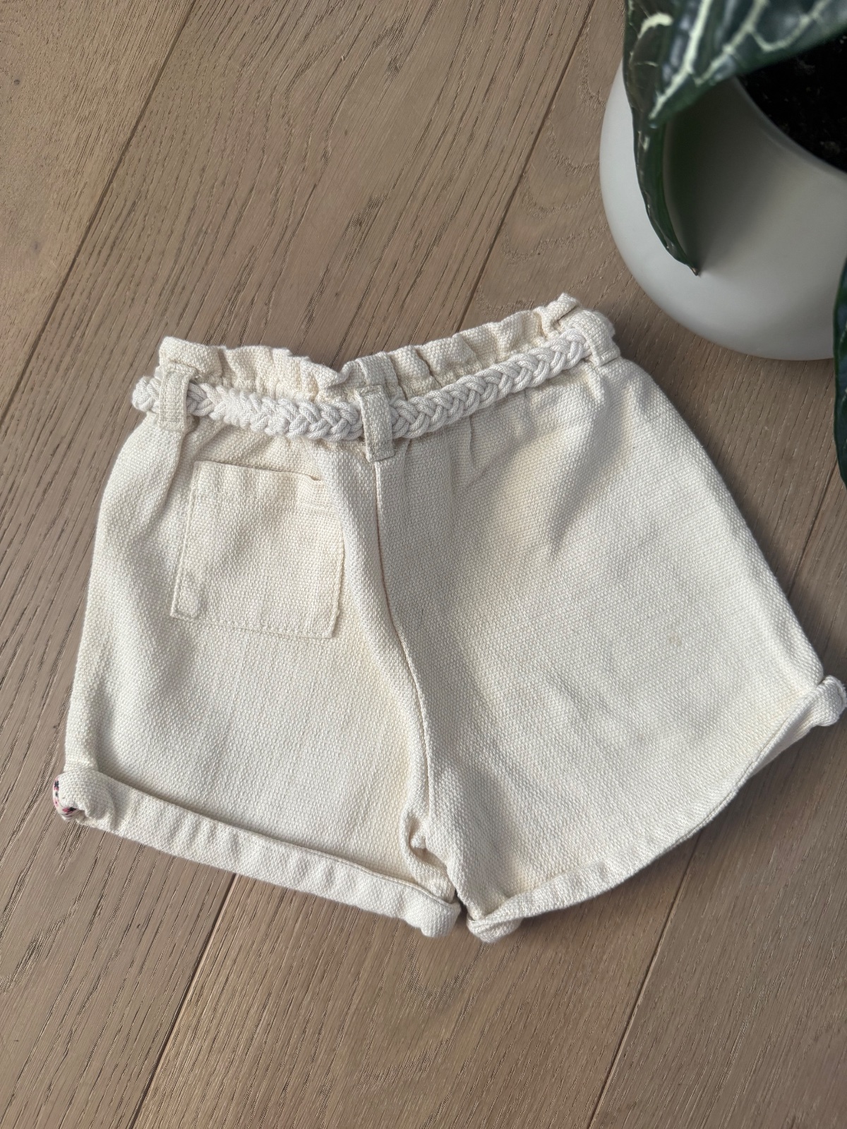 Krásne lanové kraťasy vyrobené z 80% ľanu a 20% viskozy, krásny pletený opasok a funkčne gombíky.