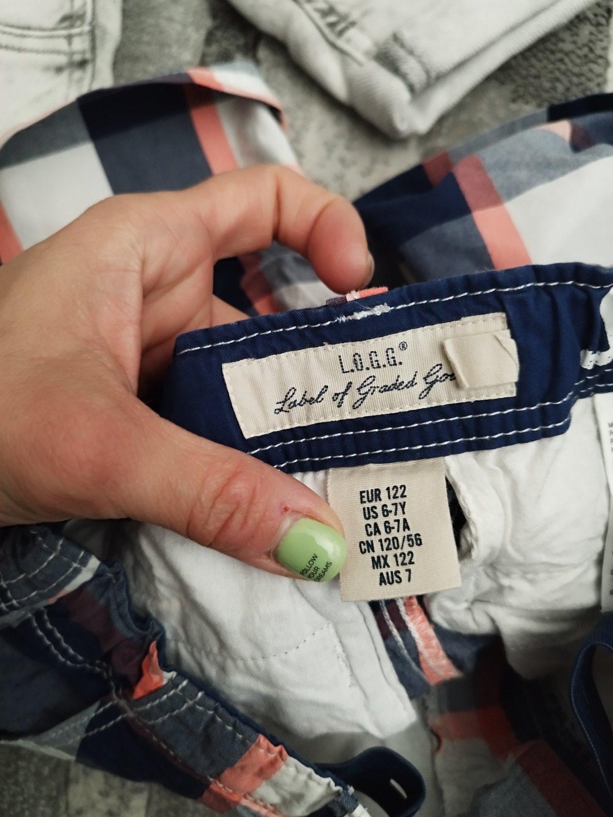 Nosene, bez poskodeni, horcicove ina znacka ale tiez zodpovedaju velkosti 122 Cena za kus 5€