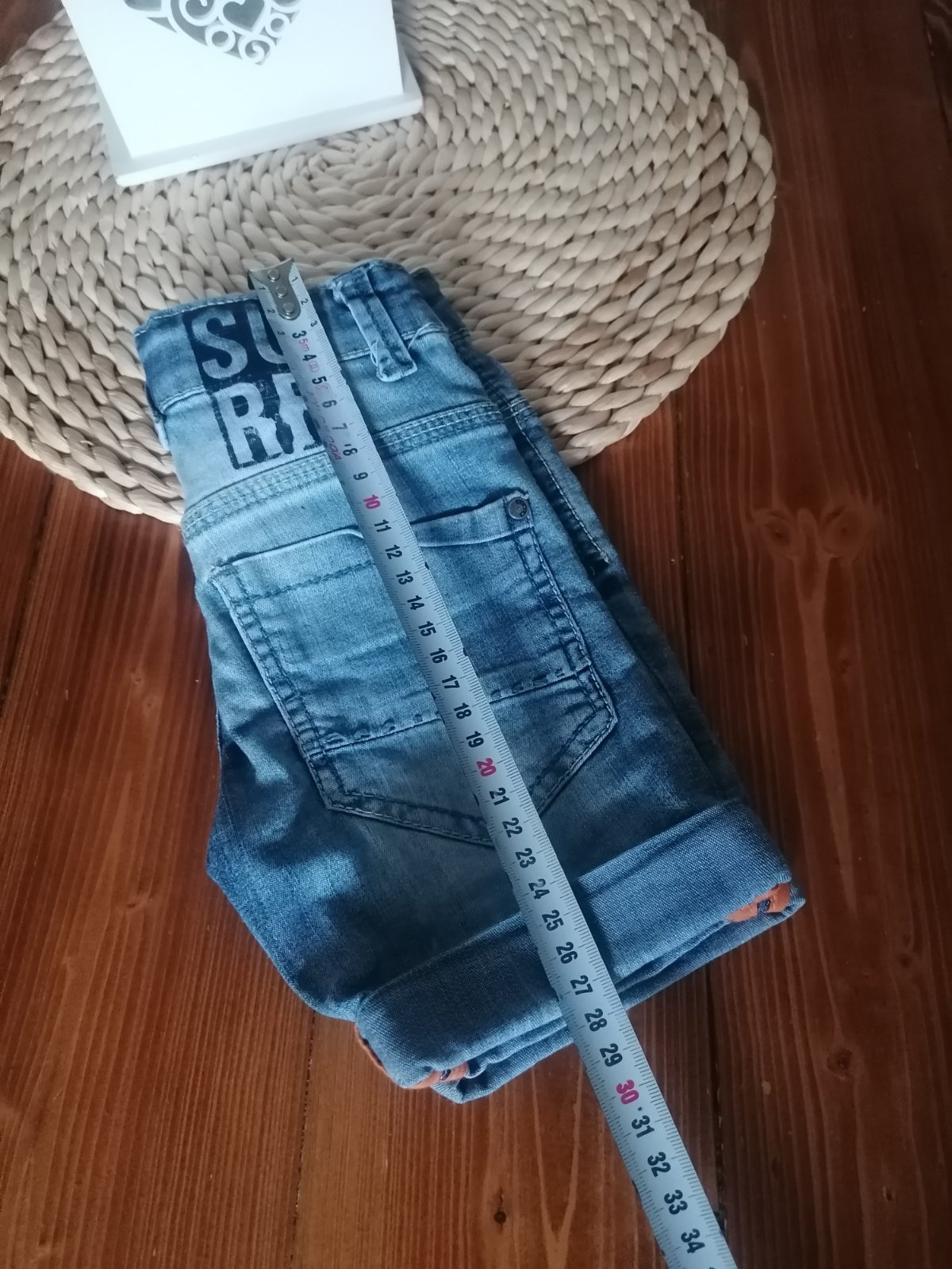 Krásne štýlové riflové kraťasy v top stave. Rozmery uvedené na foto. Ponosíte určite dlhšie ako len vo veľkosti 92.